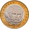 40-летний юбилей первого полёта человека в космос был отмечен выпуском монет сразу на обоих монетных дворах: Московском и Санкт-Петербургском. В обороте появилась биметаллическая монета номиналом 10 рублей, на которой изображён портрет Гагарина в скафандре.