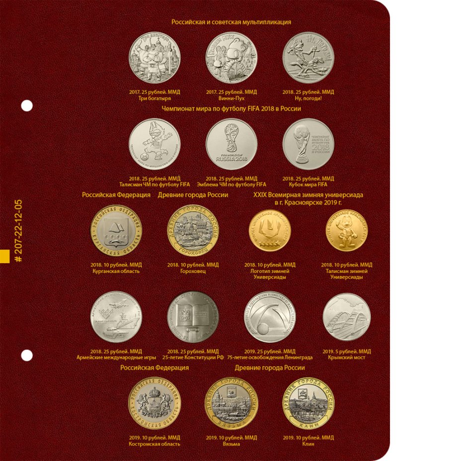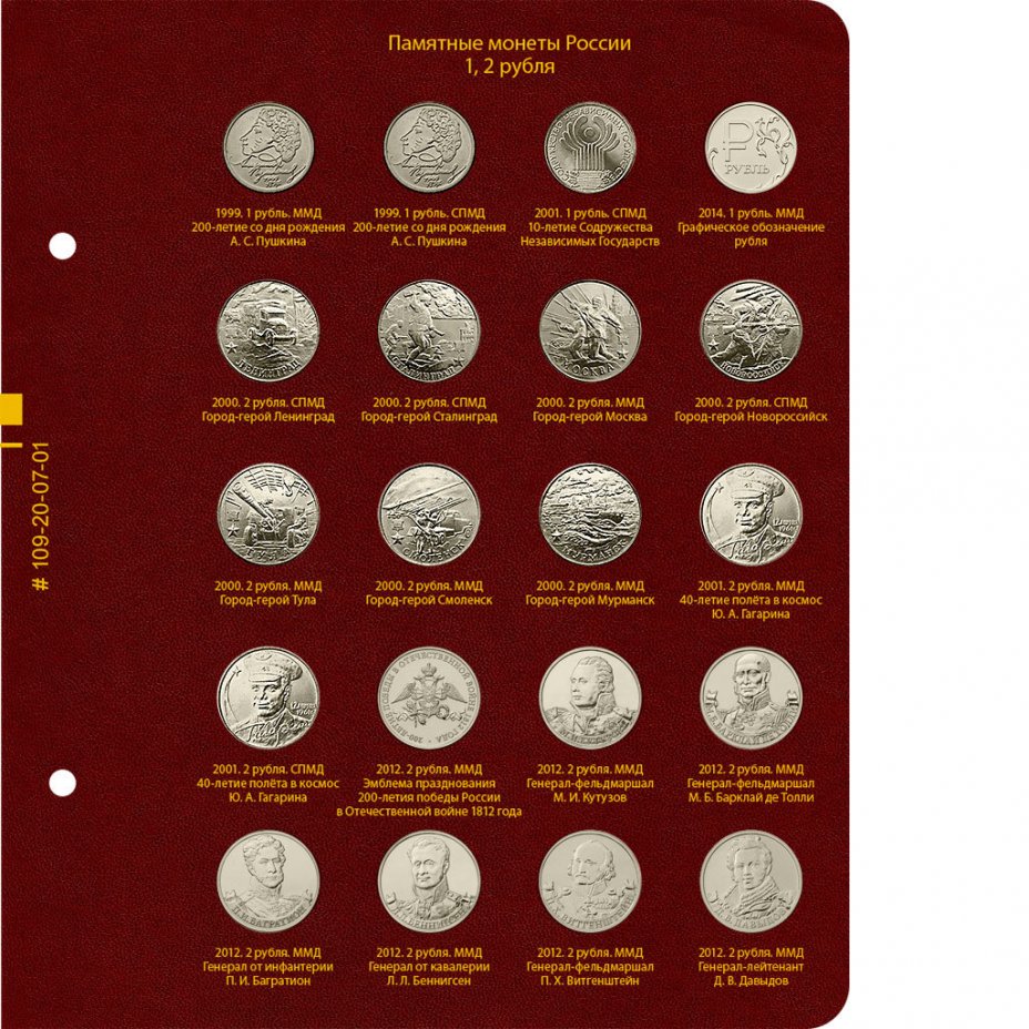 Альбом Albo Numismatico для серии памятных монет РФ номиналами 1, 2, 5 рублей с 1999 года
