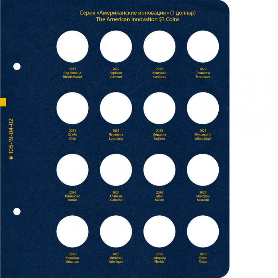 Альбом Albo Numismatico для памятных монет США "Американские инновации" (1 доллар). Без учета мон. дворов