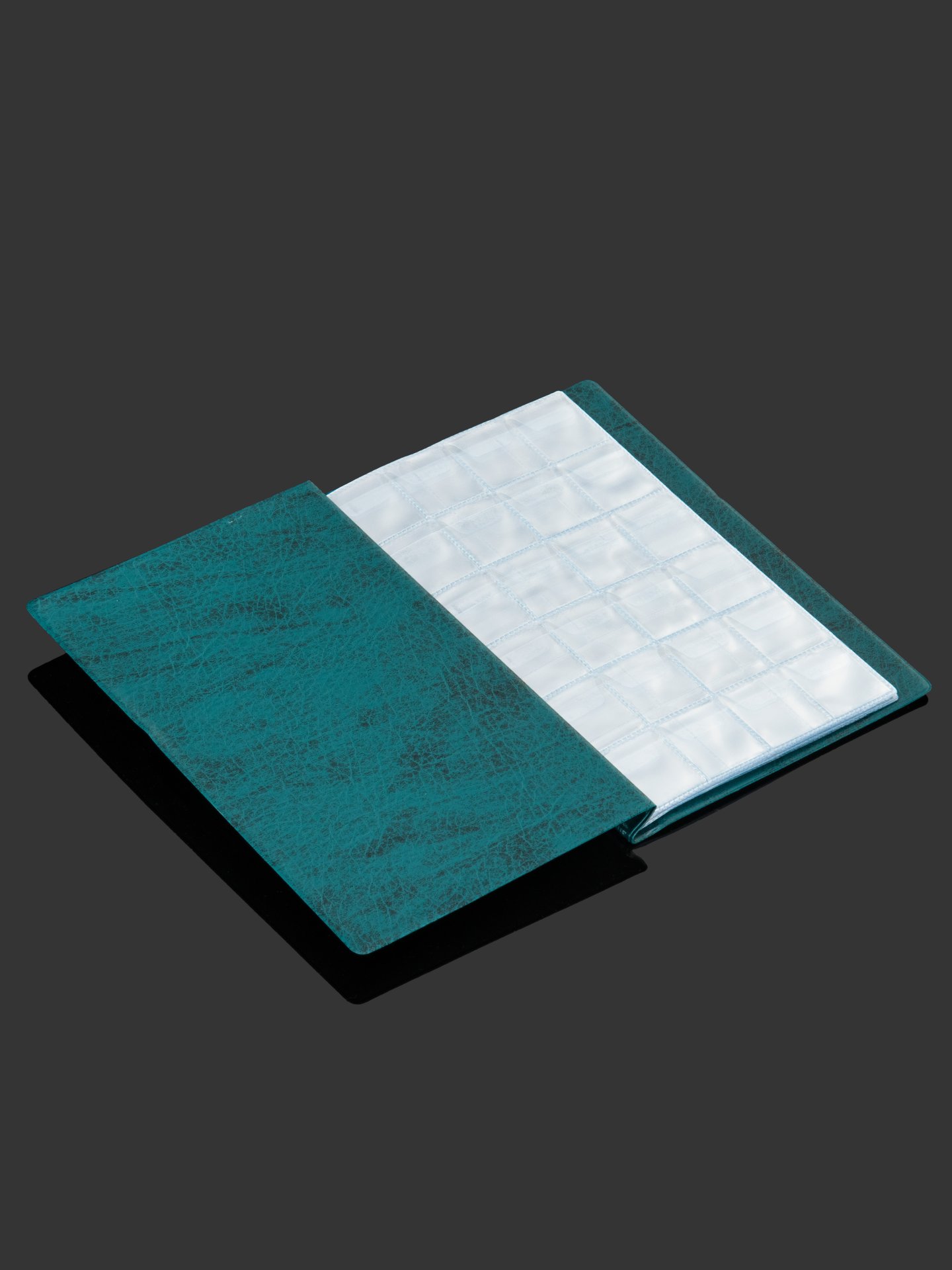 В монетнике поместится 138 коллекционных предметов: 96 – до 25 мм, 30 – до 30 мм, 12 – до 52 мм диаметра. В нём 8 листов – 4 для небольших, 2 для средних, 2 для крупных монет. Листы . Листы имеют надёжных швы, прочно вшиты в зеленую, имитирующую кожу, обложку монетника. Жёсткость и пластичность листов гарантируют то, что они выдержат вес металла, не деформируются.