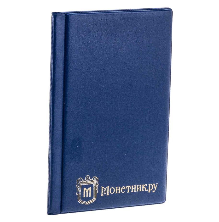 Все 138 ячеек альбома в его восьми листах сшиты в синюю обложку из искусственной кожи, мягкую и приятную на ощупь. Элементы фирменного стиля размещены в её нижней части. Размер альбома – 125х185 мм – среди его преимуществ. Не занимает много места, не отягощает сумку, рюкзак или карман. Сравните монетник и тяжёлый альбом – это как лёгкий спортивный автомобиль и громоздкий внедорожник. С монетником «Комби» – куда угодно!