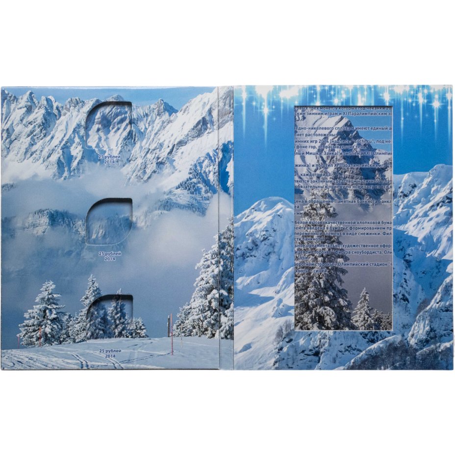 Альбом-планшет для памятных 25-рублевых монет и банкноты Олимпиада в Сочи