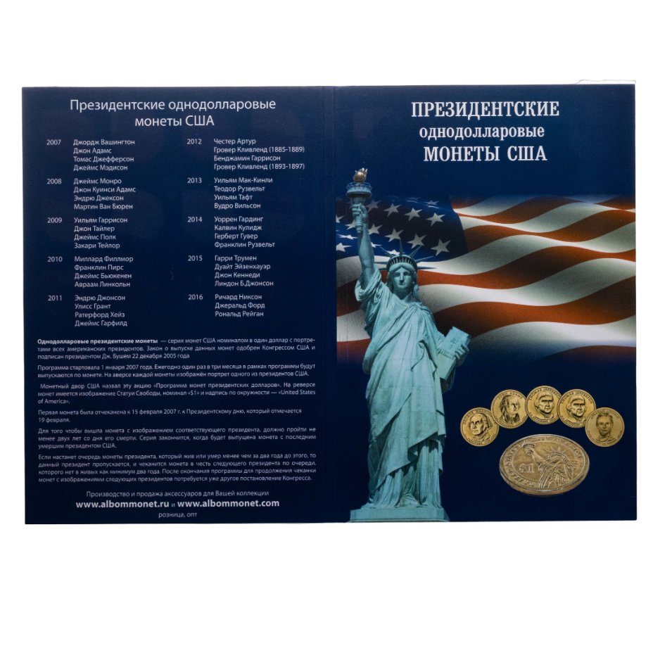 Альбом-планшет для памятных монет США номиналом 1 доллар "Президенты"