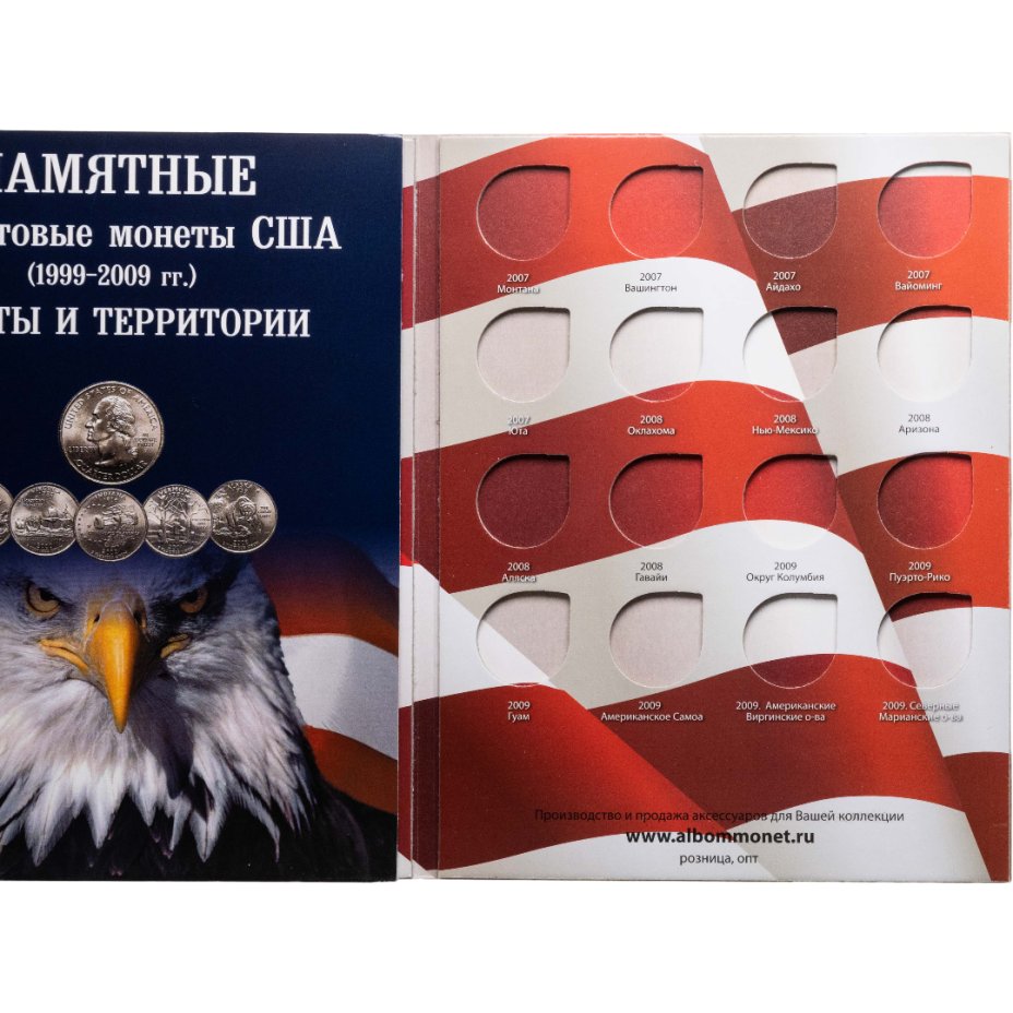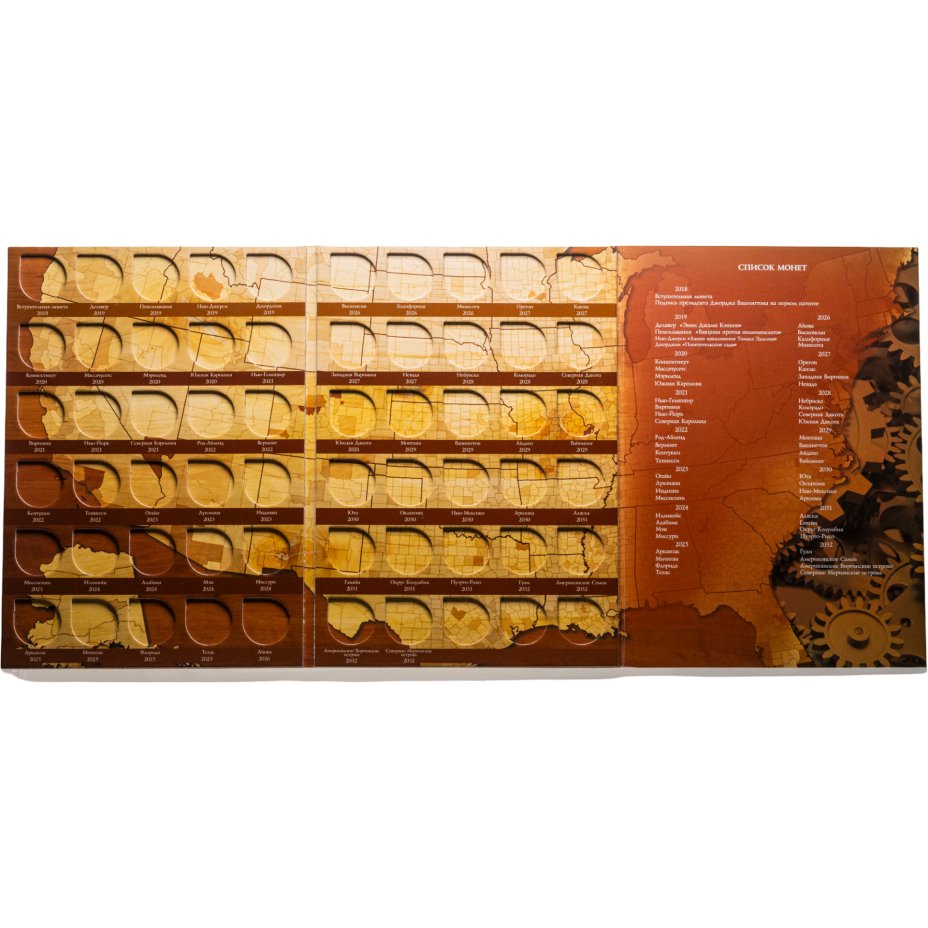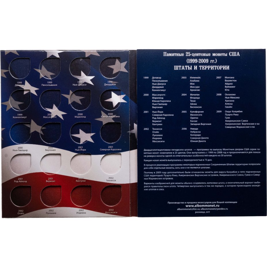 Альбом-планшет для памятных монет США номиналом 25 центов Штаты США