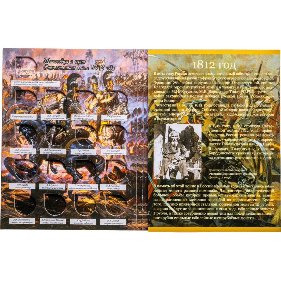 Альбом-планшет для памятных монет серии 200 лет победы в Отечественной войне 1812