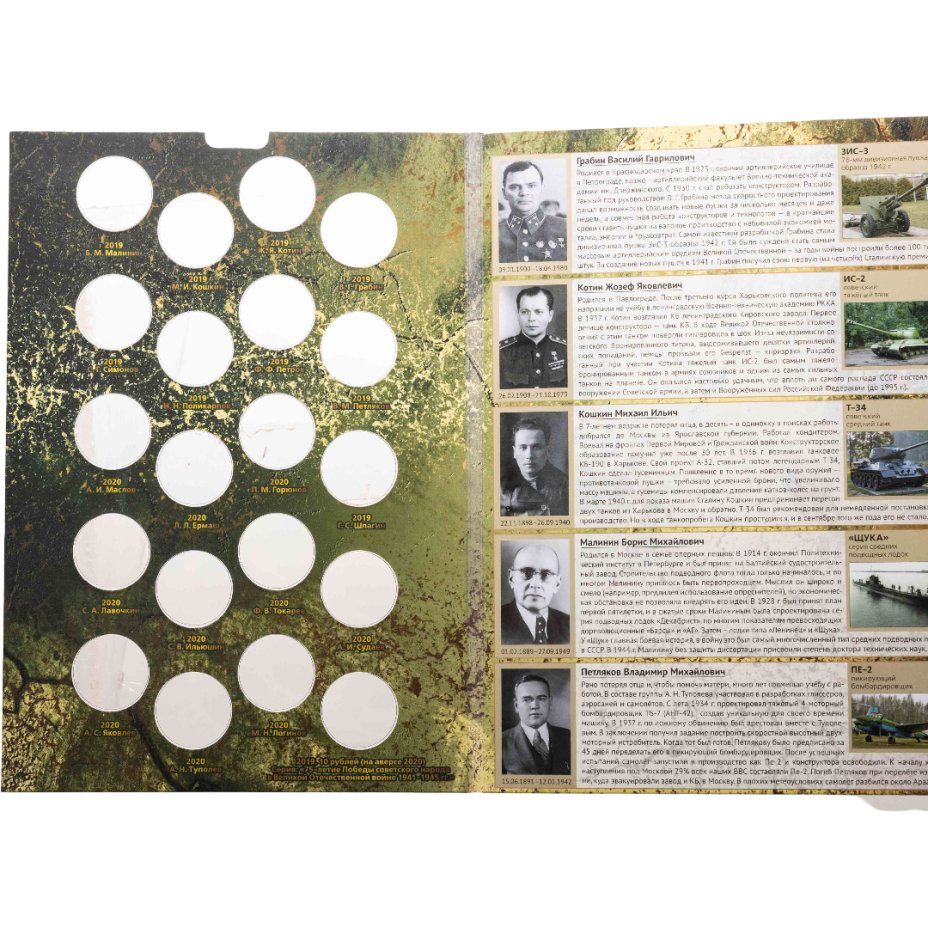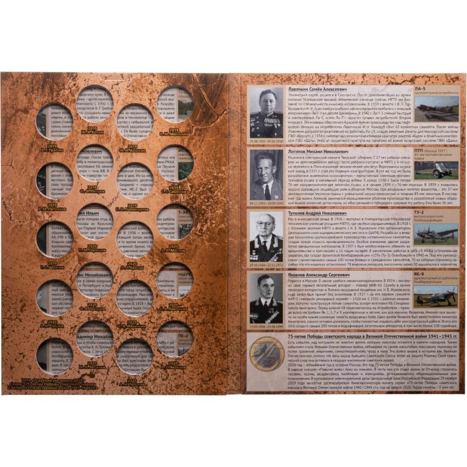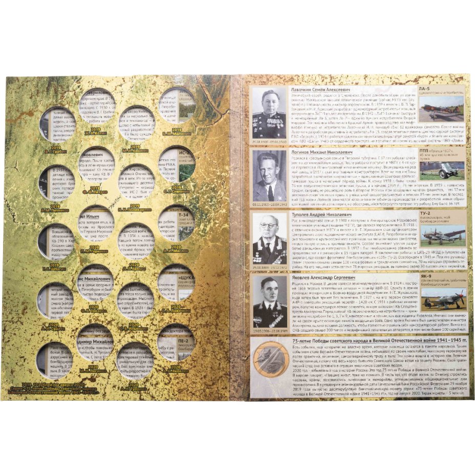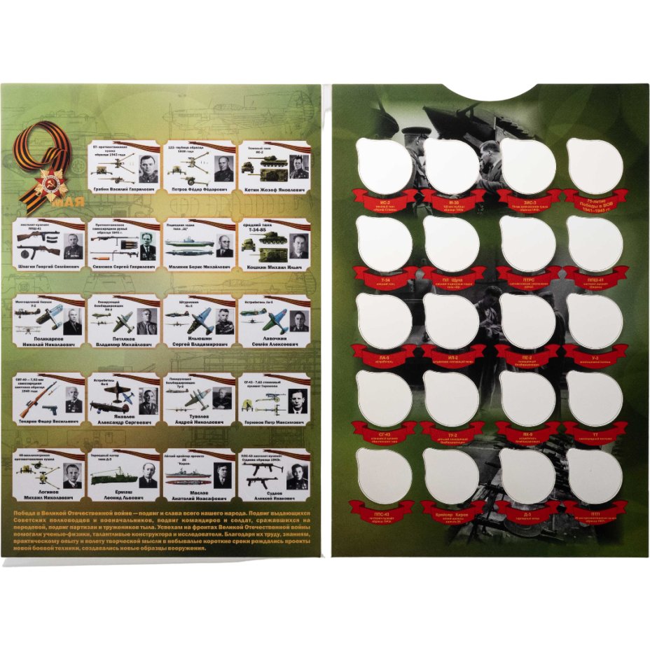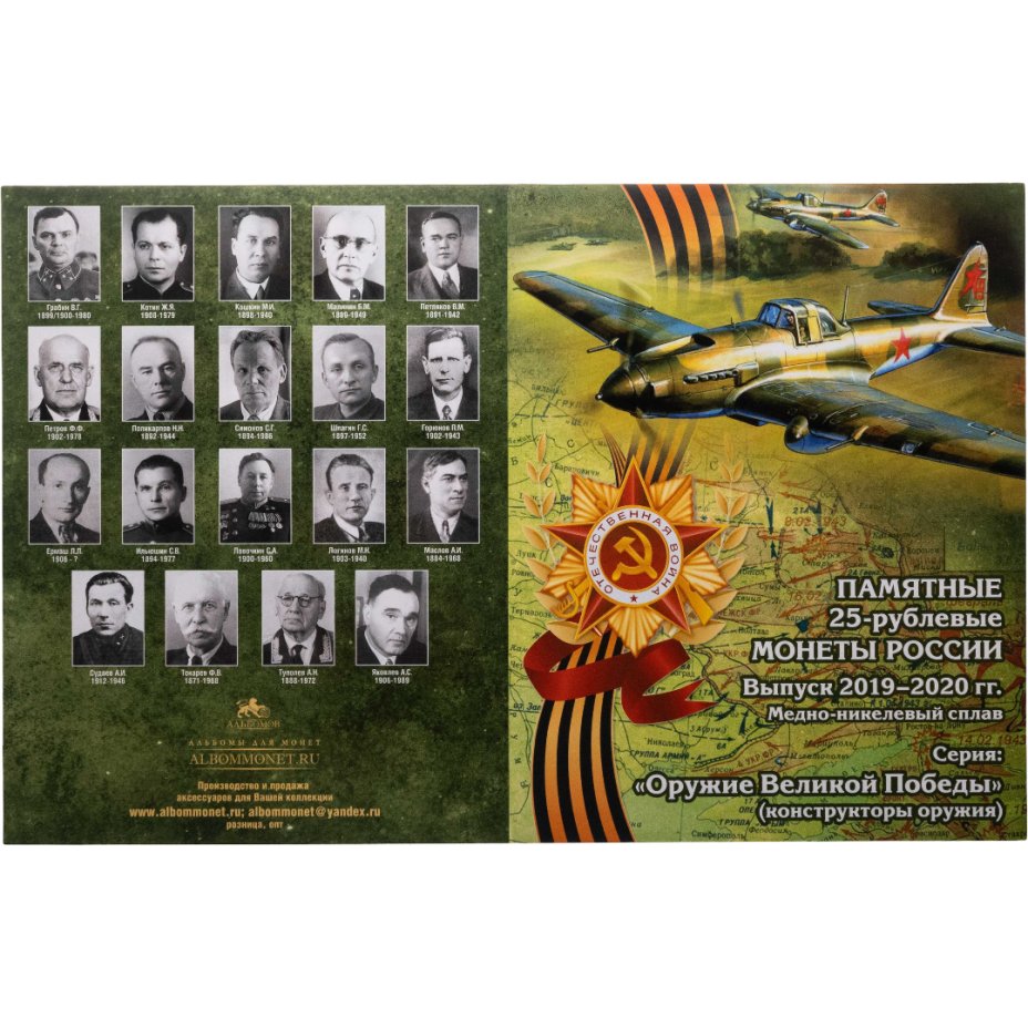 Альбом-планшет для памятных 25-рублевых монет серии "Оружие Великой Победы (конструкторы оружия)" самолет