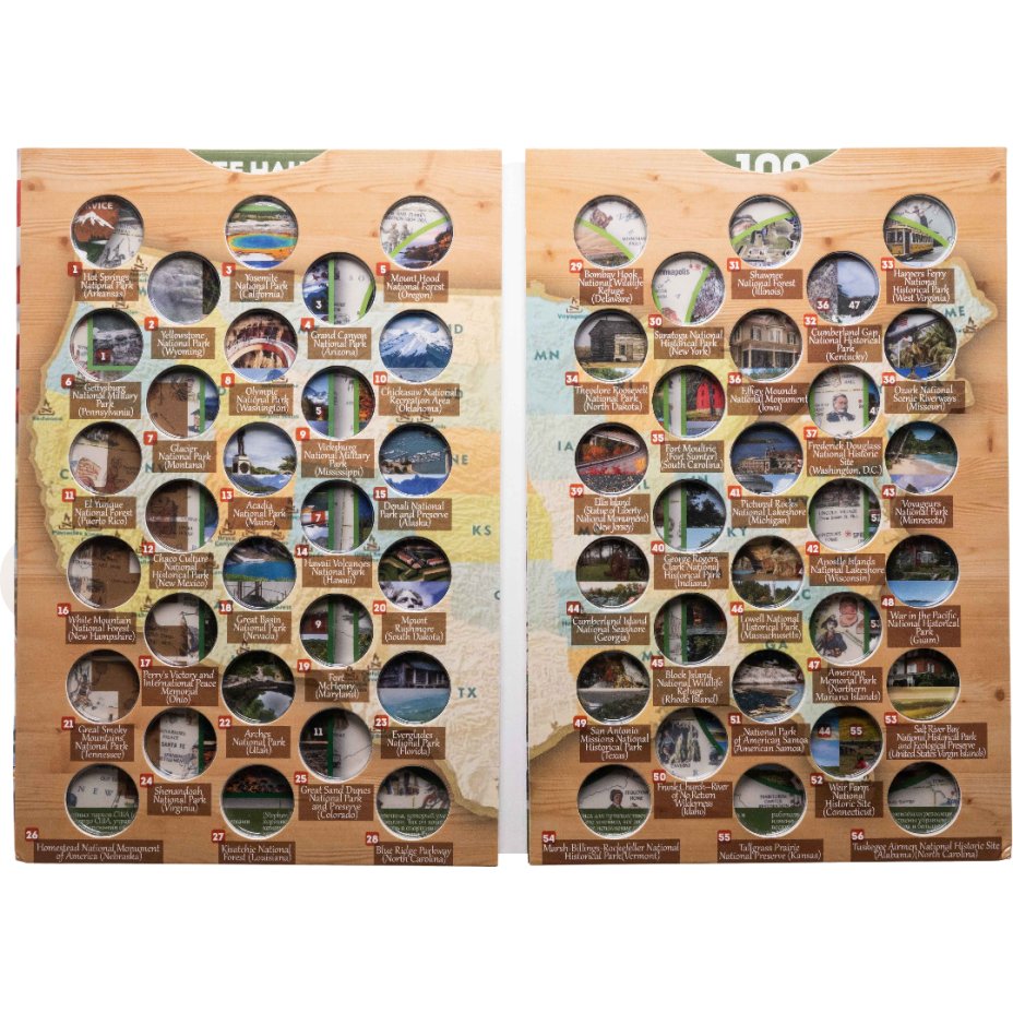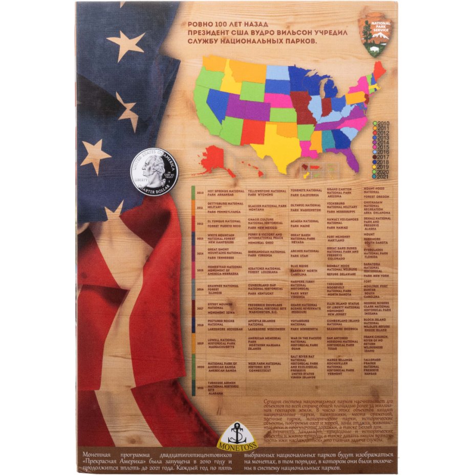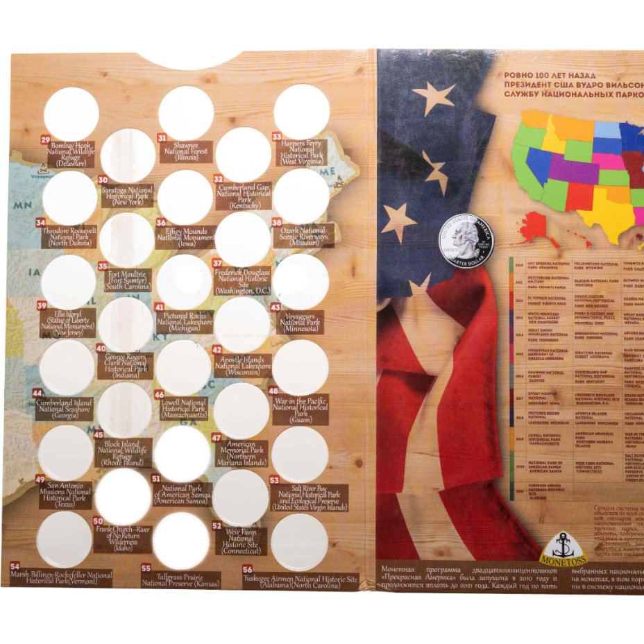 Капсульный альбом для 25-центовых памятных монет США серия "Прекрасная Америка" (национальные парки) 2010-2021