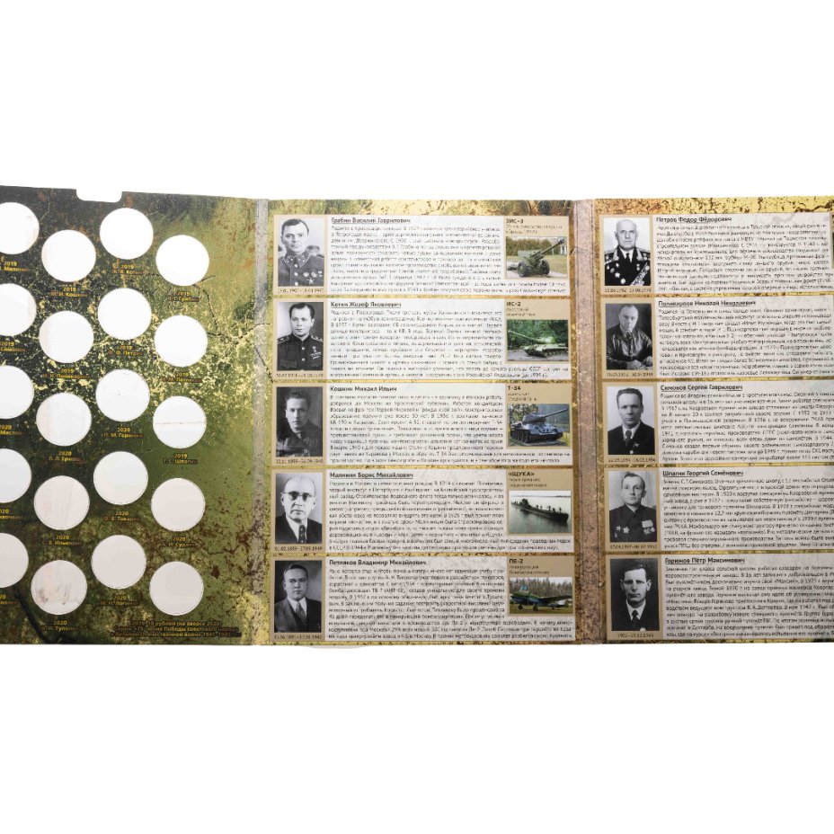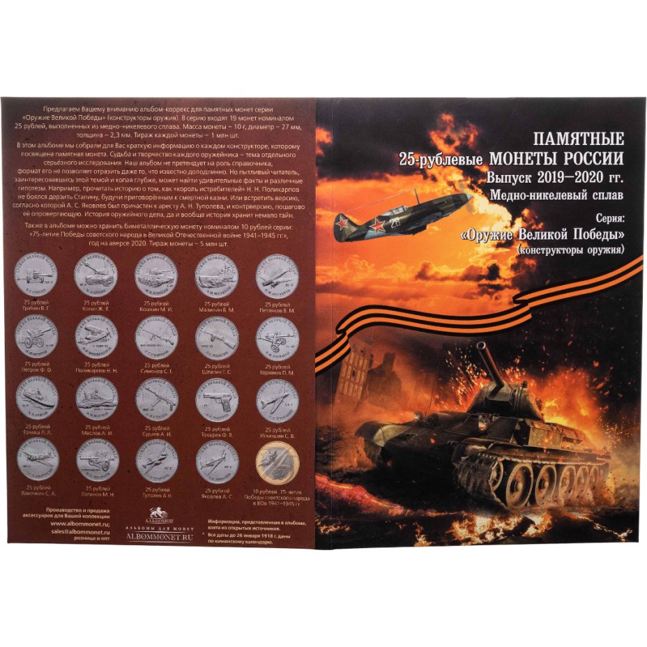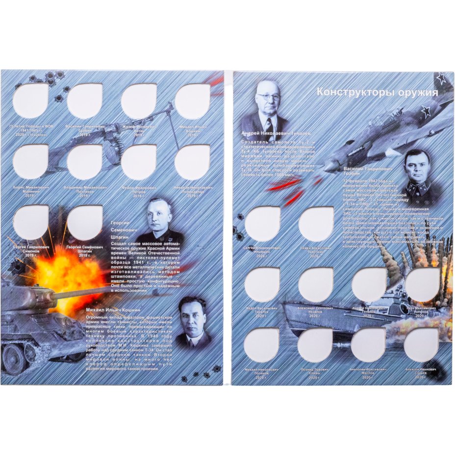 Альбом-коррекс для памятных 25-рублевых монет России (2019-2020г.) серии «Оружие Великой Победы» (конструкторы оружия).