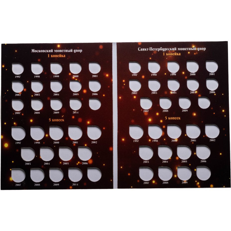 Альбом-планшет под современные копейки с 1997 - 2014 гг. (1 и 5 копеек)