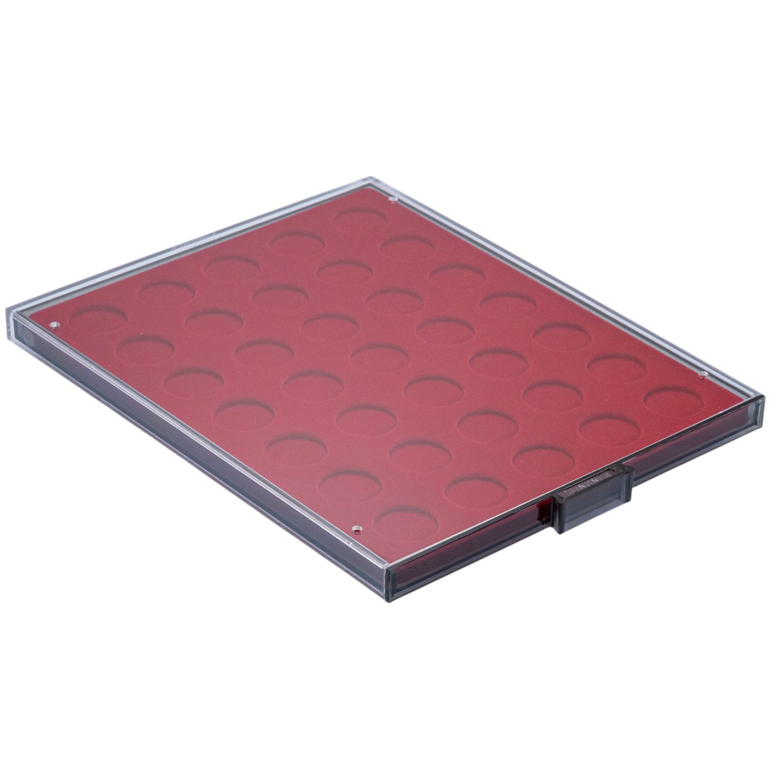 Материал: пластмасса ("Задымленное стекло"), внутри темно-красный "бархат". Диаметр ячейки: 30 мм.