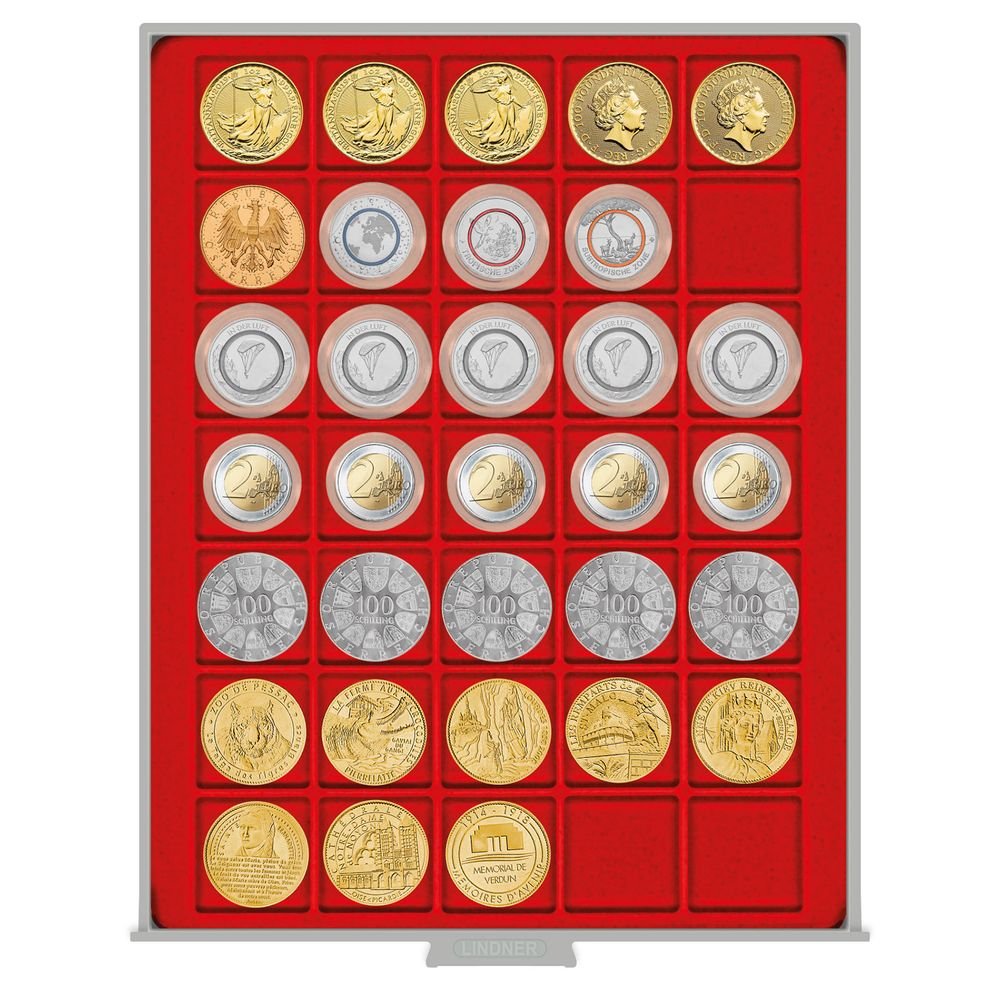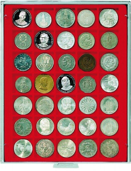 Материал: пластмасса, внутри красный "бархат". Для монет диаметром до: 36 мм.