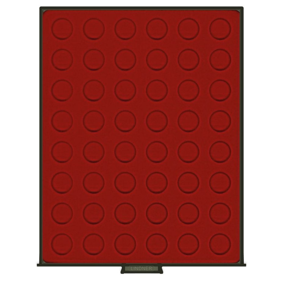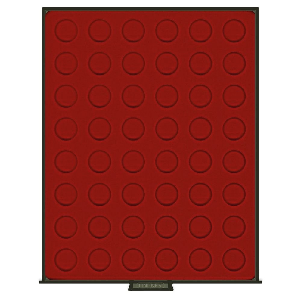 Материал: пластмасса ("Задымленное стекло"), внутри темно-красный "бархат". Диаметр ячейки: 24,25 мм.
