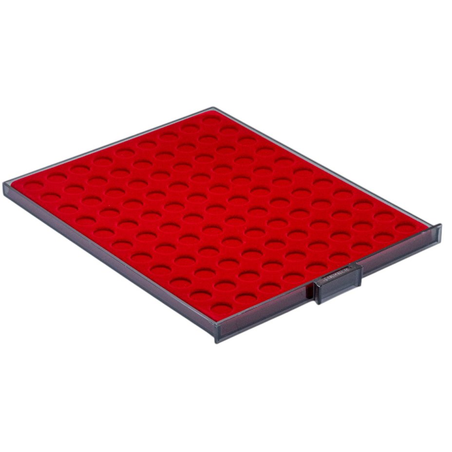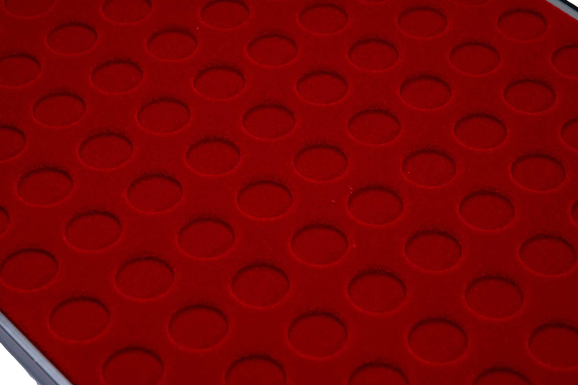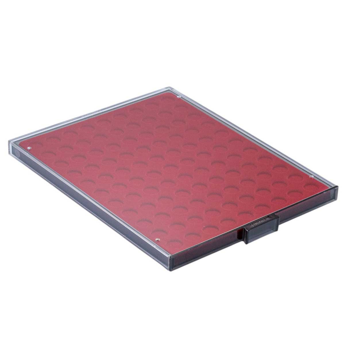 Материал: пластмасса ("Задымленное стекло"), внутри темно-красный "бархат". Диаметр ячейки: 18,5 мм.