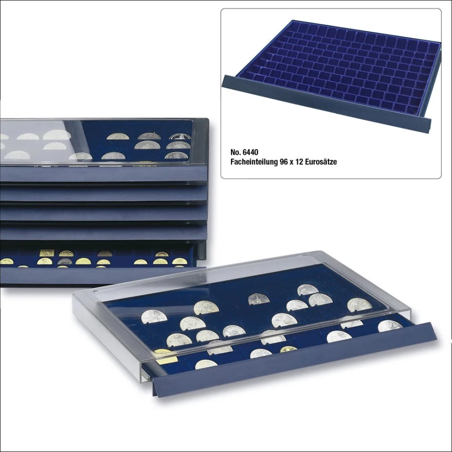 Предназначен: на 12 полных наборов Евро (от 1 евроцента до 2 евро)