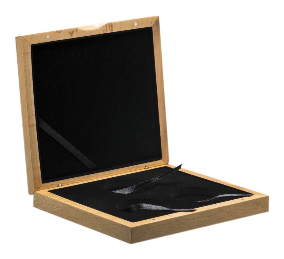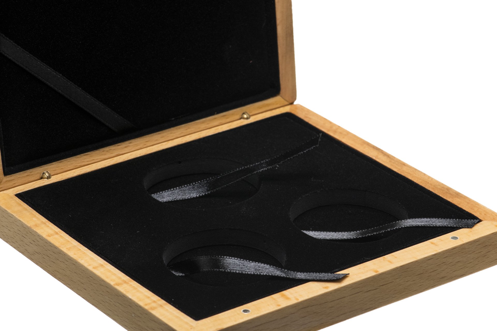 купить Футляр деревянный для 3-х монет диаметр ячеек 45 мм