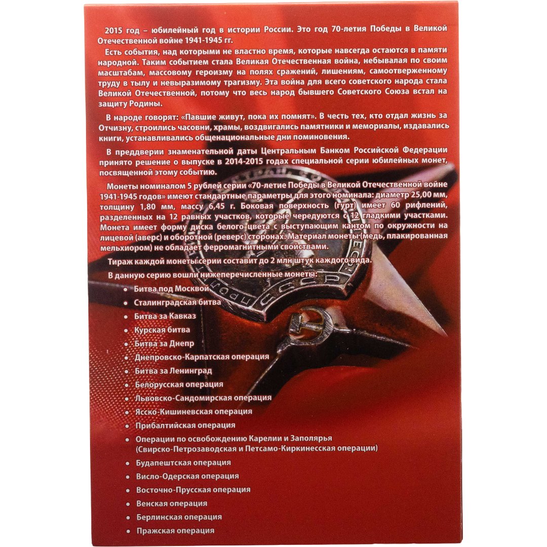 Блистерный лист для монет серии "70 лет Победы"