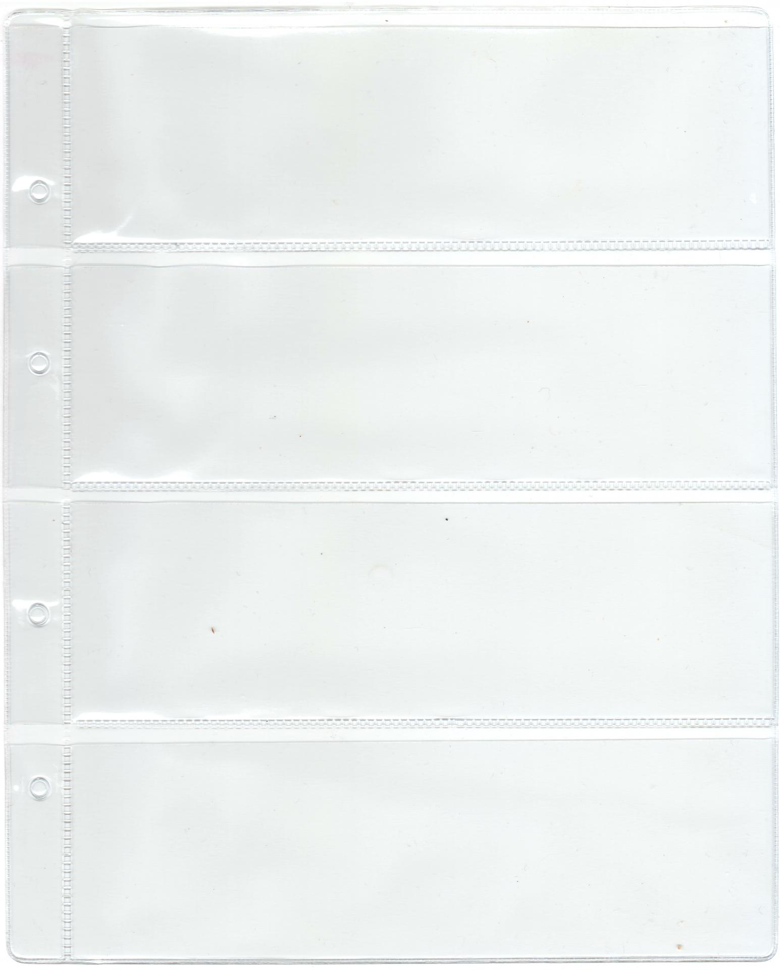 Пластиковые листы Optima созданы для быстрой систематизации и компактного хранения банкнот. Прочный лист 200х250 мм под 4 боны – универсальный аксессуар, которым можно дополнить любую 4-кольцевую папку, альбом формата Optima. Аксессуар изготовлен из специального инертного полностью безвредного материала. Через пластик повышенной прозрачности обе стороны банкноты просматриваются во всех деталях.
