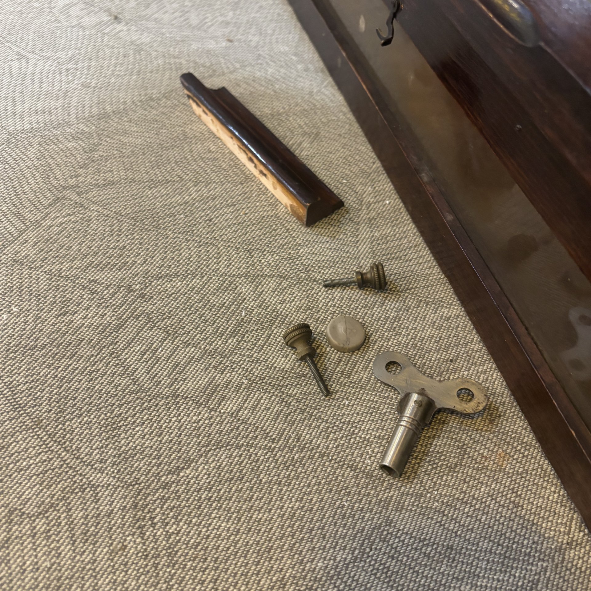 Купить Часы настенные в корпусе c декором в виде боковых колонн на створке (марка "E.R. Sehlanker"), ключ в комплекте, дерево, металл, стекло, Германия, 1890-1910 гг.