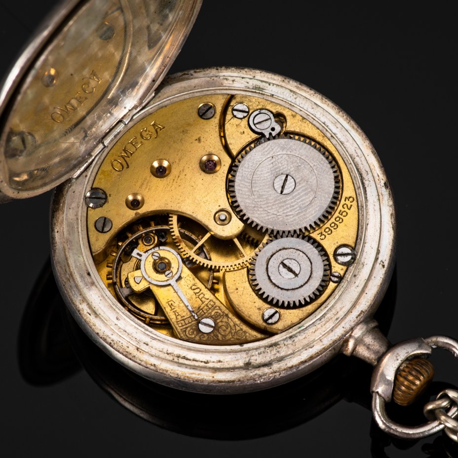Карманные часы "Омега" (Omega), металл, серебрение, стекло, Швейцария, 1890-1910 гг.