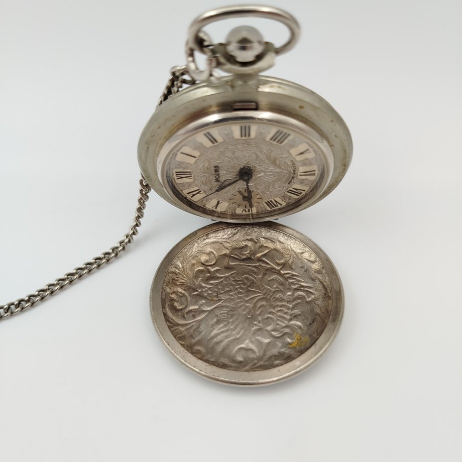 Карманные часы "Молния" с ажурным растительным декором и дарственной надписью, металл, пластик, Челябинский часовой завод «Молния», СССР, 1970-1980 гг.