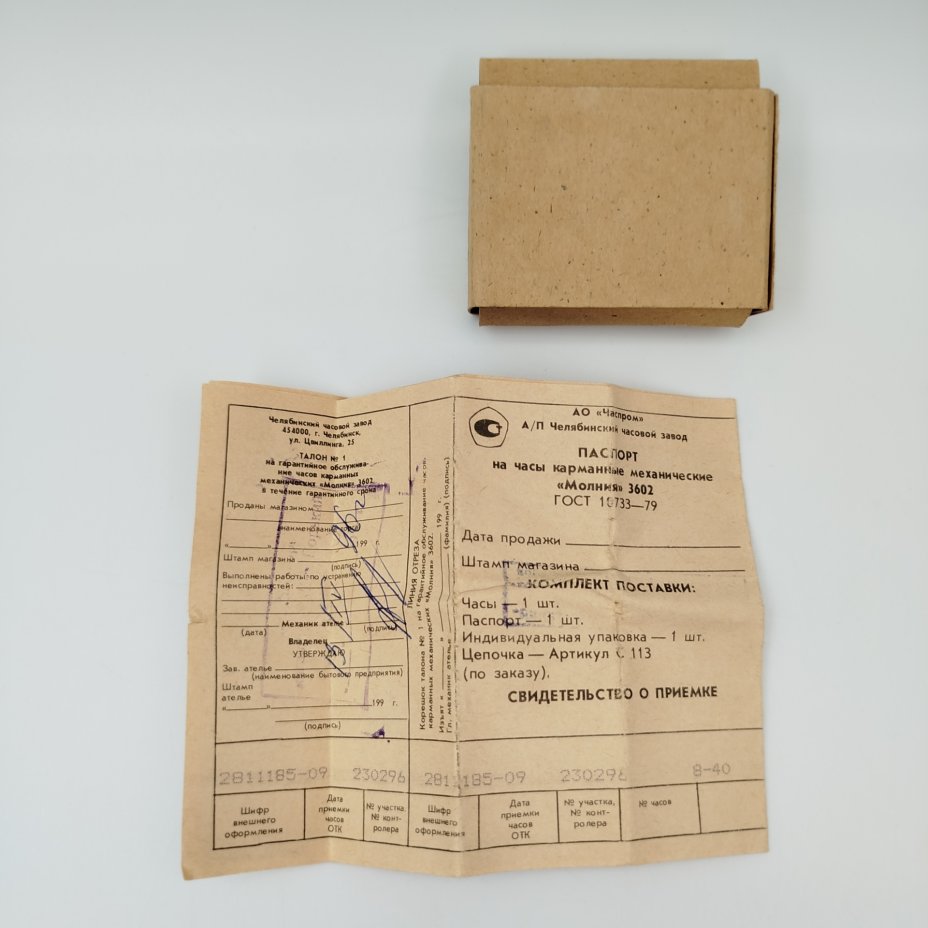 Часы карманные "Жар-птица", металл, бумага, печать, Челябинский часовой завод «Молния», СССР, 1980-1990 гг.