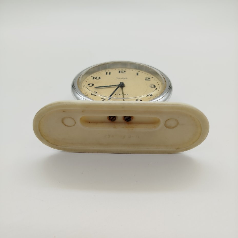 Часы настольные (нерабочие) "Slava 11 jewels", металл, стекло, пластик, Второй Московский часовой завод «Слава», СССР, 1970-1990 гг.