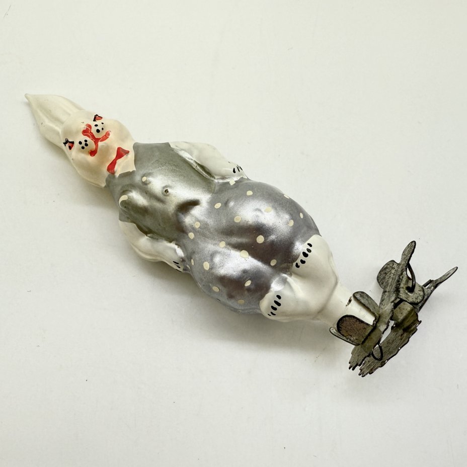 Игрушка ёлочная "Снеговик" из набора "Зима", стекло, роспись, металл, СССР, 1950-1970 гг.