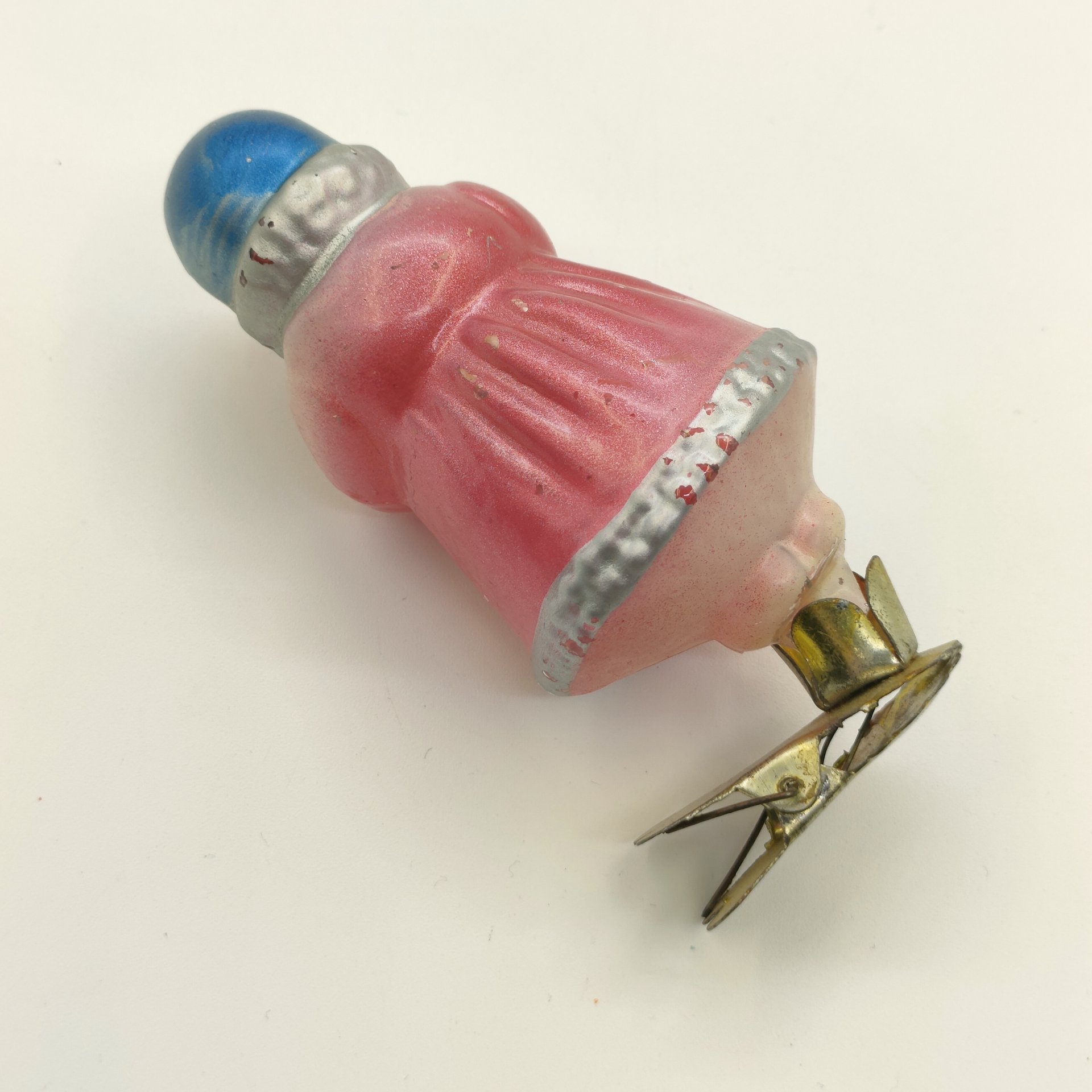 Игрушка ёлочная на прищепке "Марфушечка" из сказки "Морозко", стекло, краска, металл, Завод стеклянных ёлочных украшений и оптических изделий, г. Москва, СССР, 1950-1960 гг.