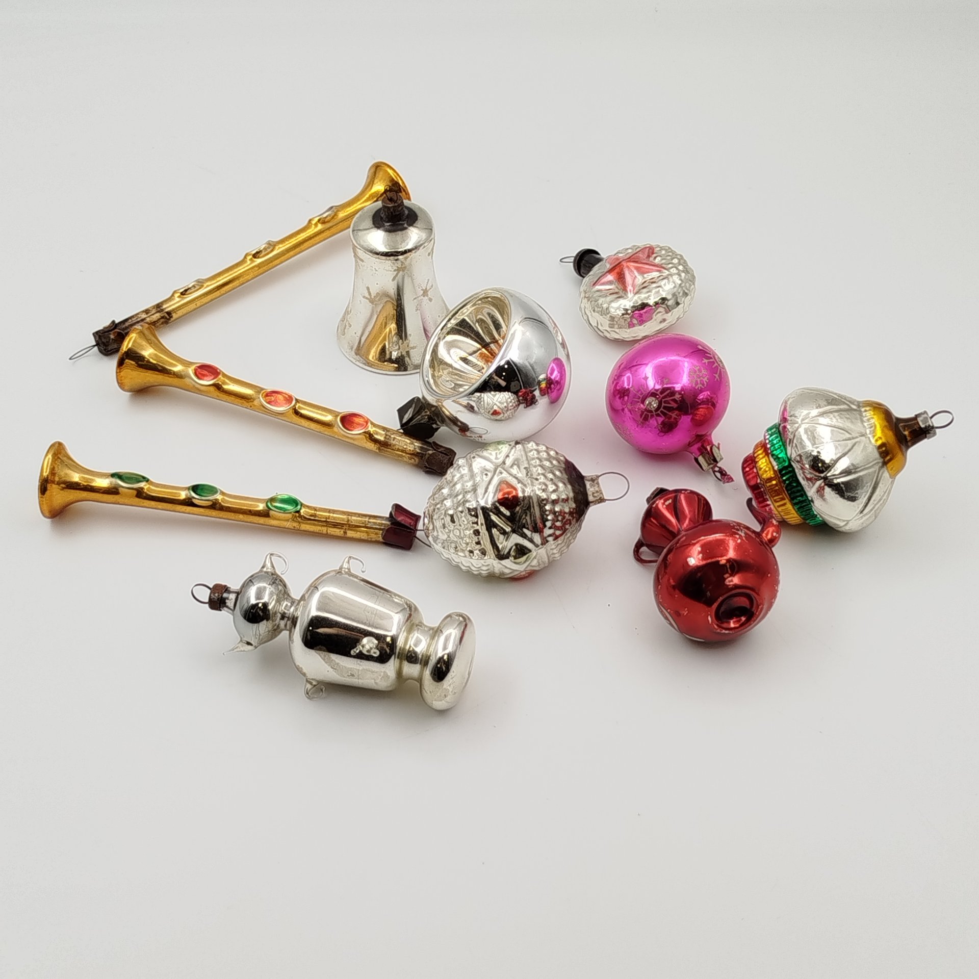 Купить Набор из 14 ёлочных игрушек разных форм и расцветок, стекло, краска, металл, СССР, 1950-1970 гг.
