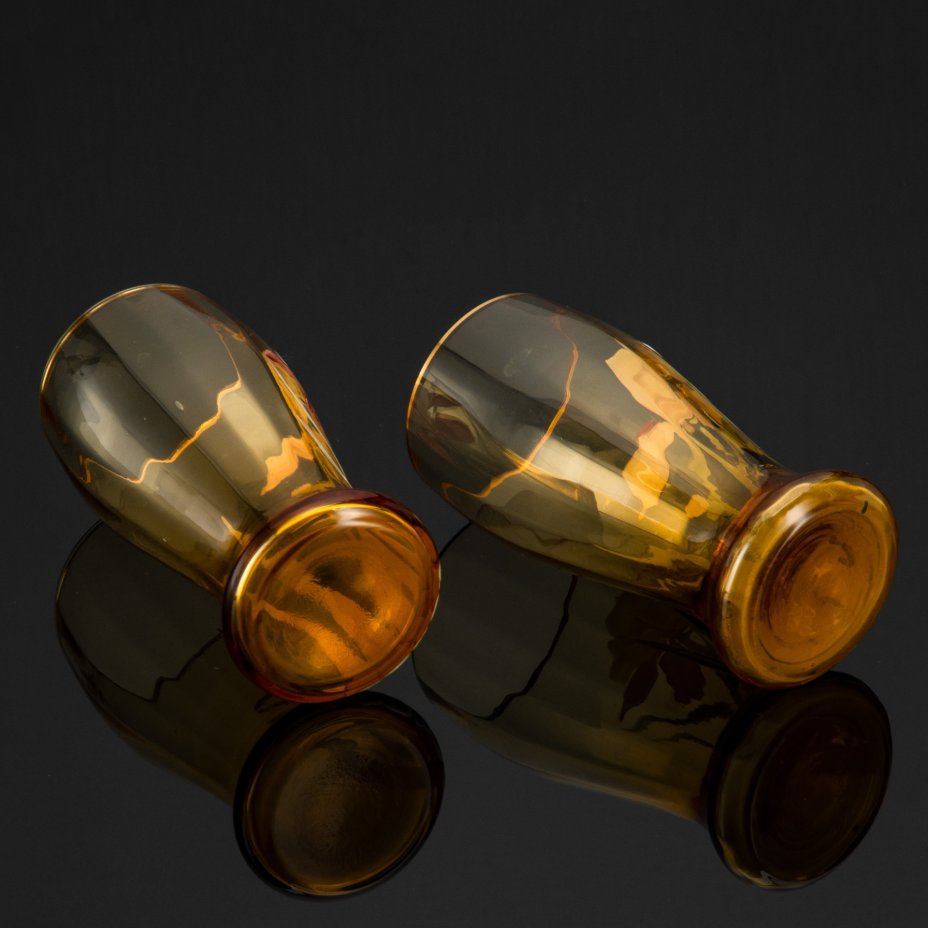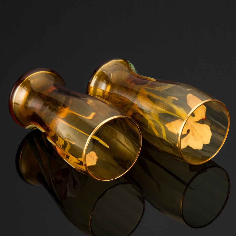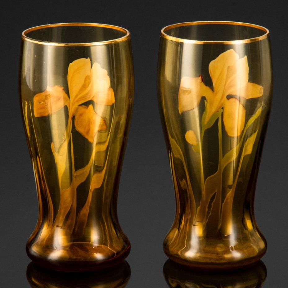 Набор из двух бокалов украшенных изображением ирисов, стекло, эмалевая роспись, Франция, 1900-1920 гг.