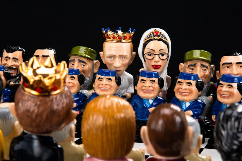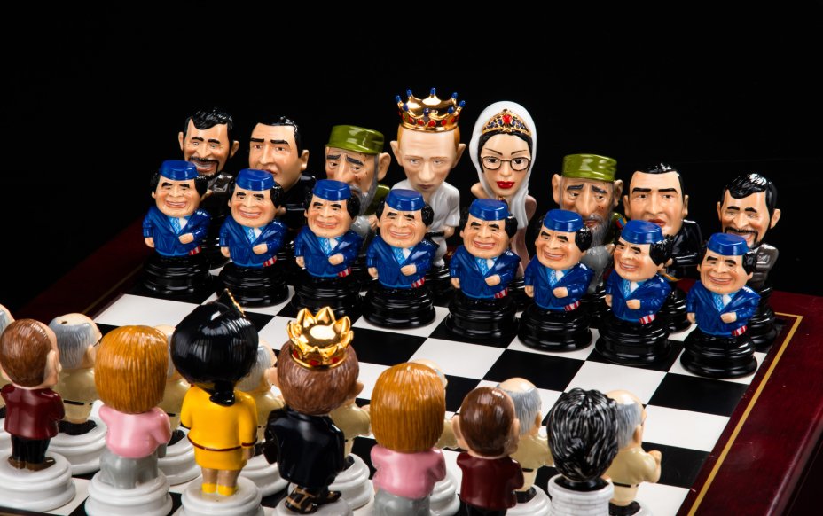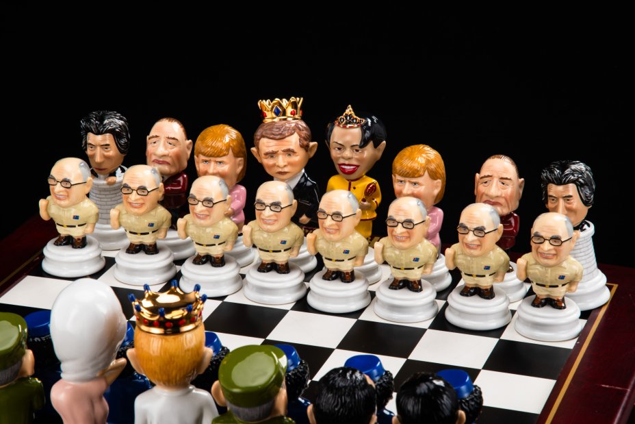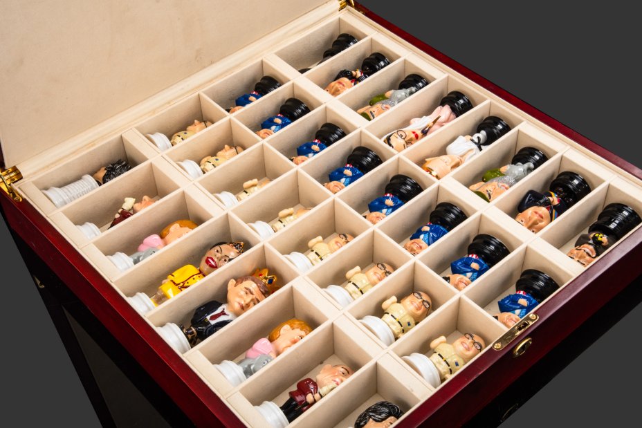 Шахматы "Мировые лидеры", дерево, фарфор, роспись, золочение, Российская Федерация, 2000-2020 гг.