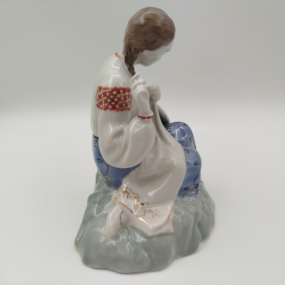 Статуэтка "Девочка в голубом платье и чепце с розовым бантом", фарфор, роспись, Товарищество М.С. Кузнецова в Вербилках (г. Дмитров), Российская империя, 1892-1917 гг.