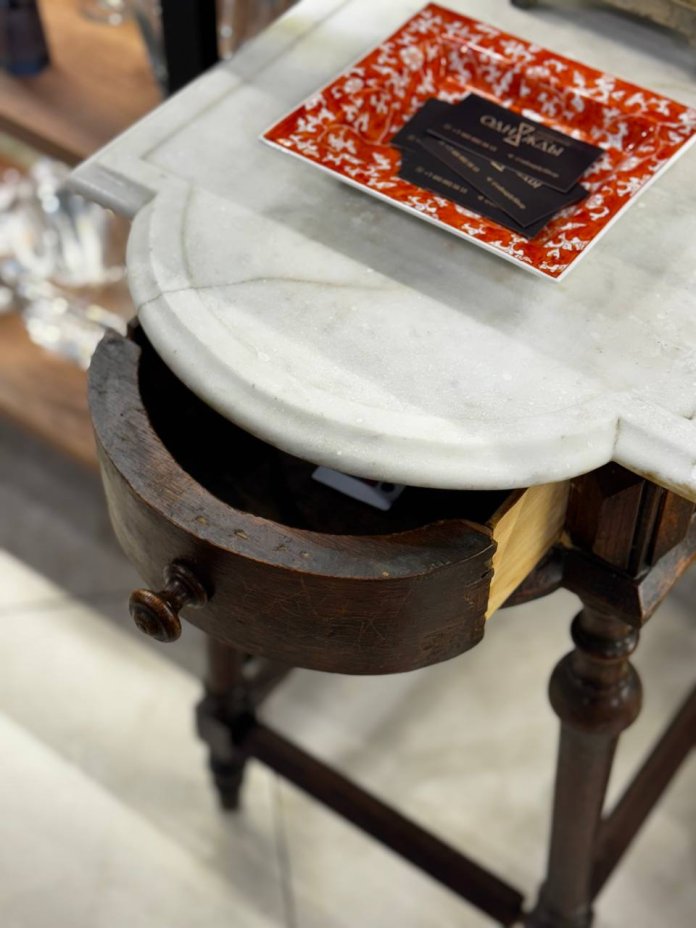 Столик в стиле ампир на трех зооморфных ножках с фигурами лебедей и имитацией мрамора на столешнице, дерево, резьба, полимерный материал, Европа, 1970-2000 гг.