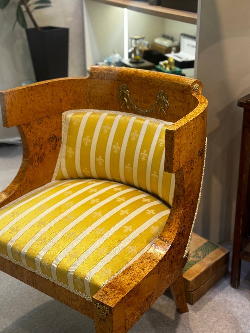 Кресло в стиле Ампир, дерево, резьба, ткань, Российская империя, 1850-1880 гг.