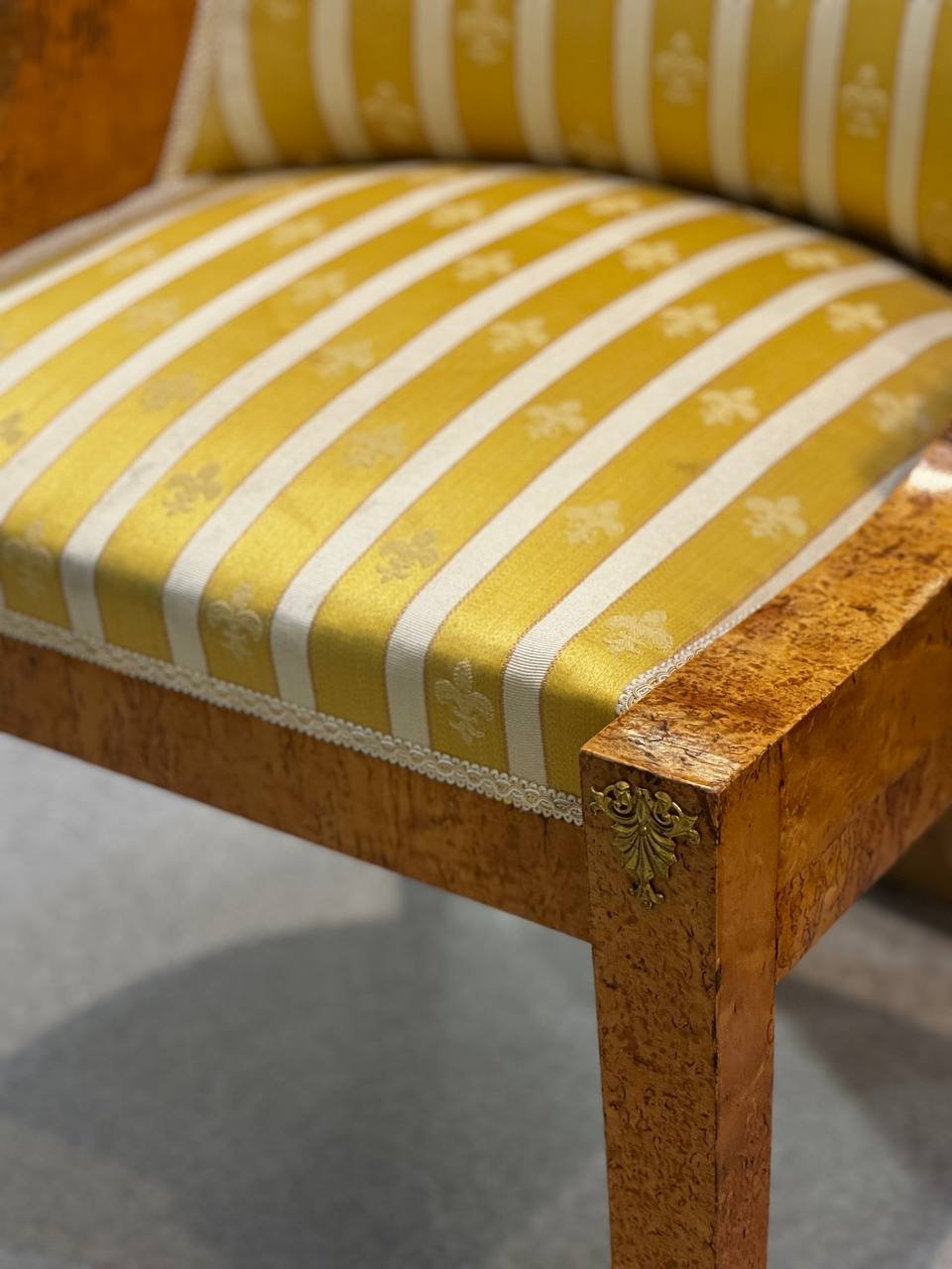 Гостиный гарнитур в стиле "Жакоб", дерево, красное дерево, латунь, текстиль, тесьма, тонировка, Европа, 1900-1910 гг.
