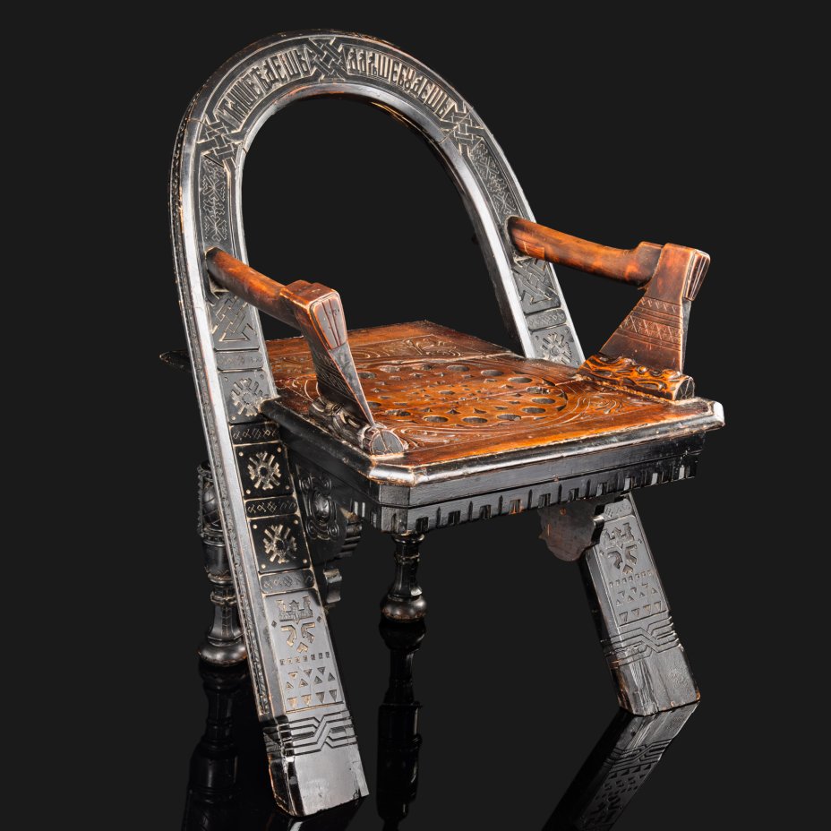 Кресло в стиле советского ампира, в форме лиры, дерево, (береза), лак, ткань, СССР, 1940-1960 гг.