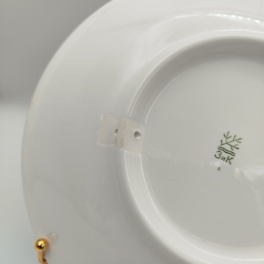 - Материал: Фарфор, деколь, золочение, цировка