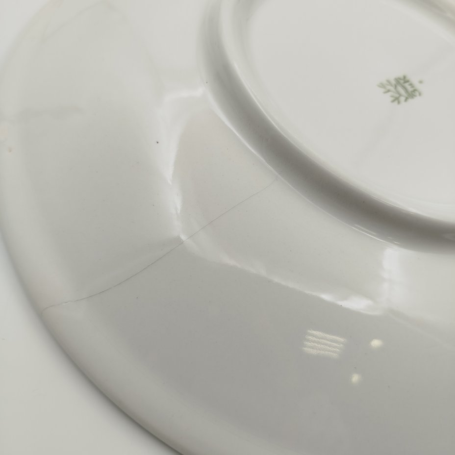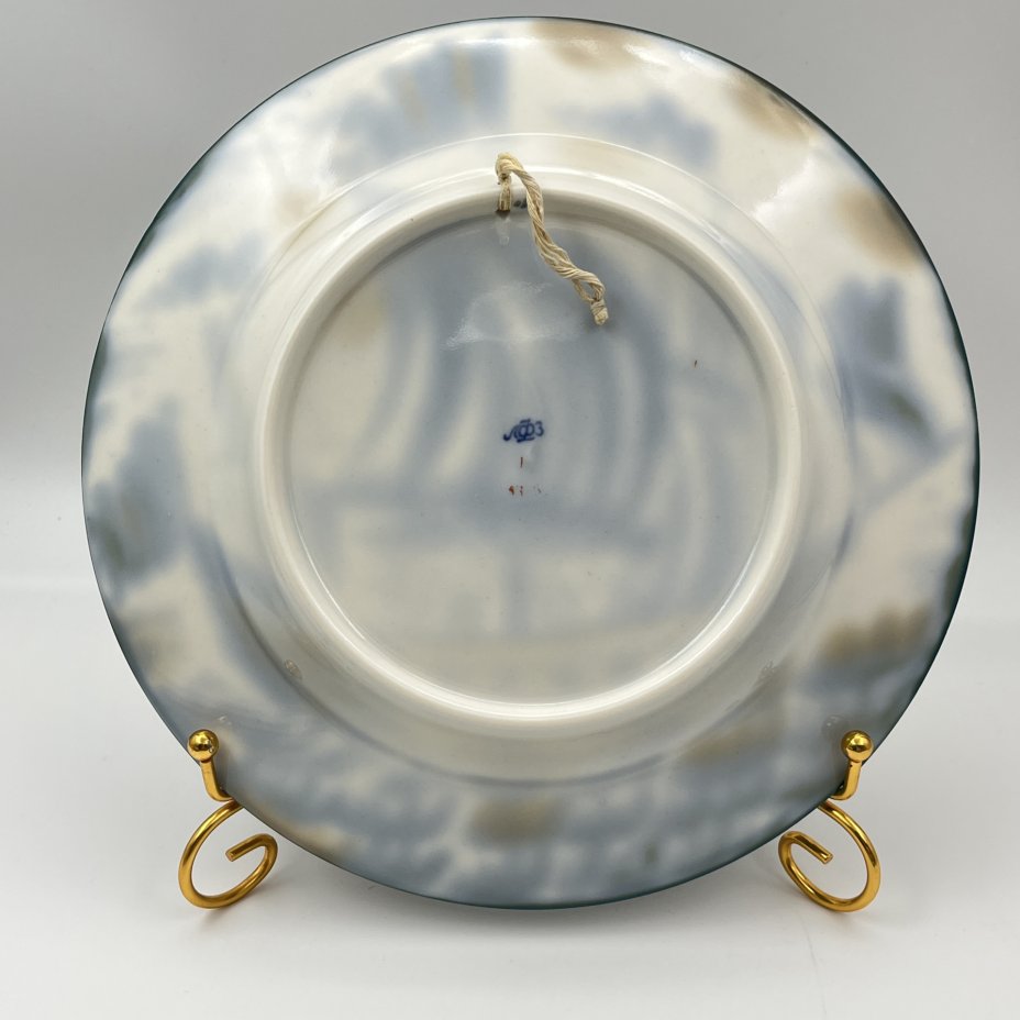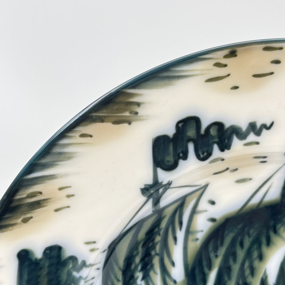 Блюдо декоративное "У ручья", художник - С.Б. Прессман, фаянс, роспись, Конаковский фаянсовый завод им. М.И. Калинина (ЗиК Конаково), СССР, 1930-1940 гг.