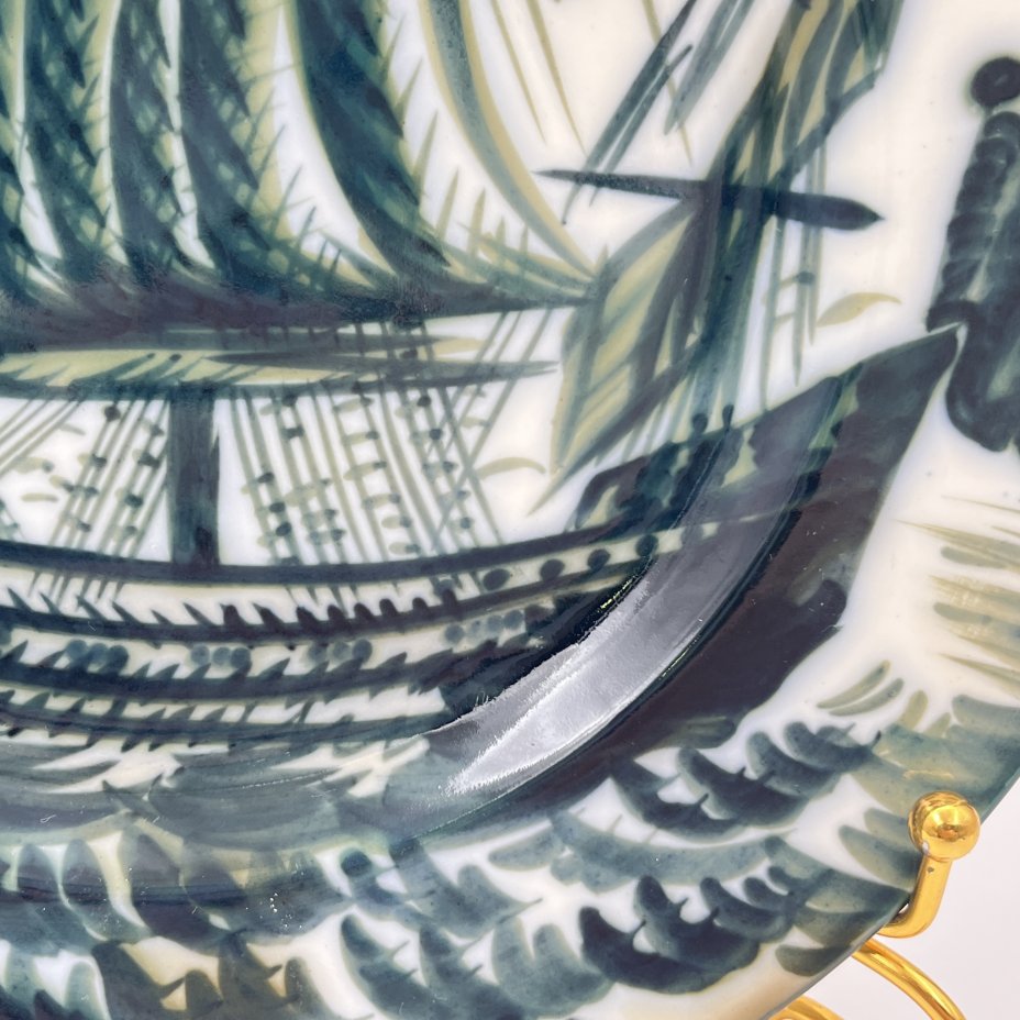 Тарелка декоративная "Корабль", автор В.М. Городецкий, фарфор, роспись, Ленинградский фарфоровый завод (ЛФЗ), СССР, 1960-1970 гг.