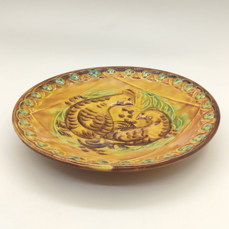 Тарелка настенная "Куропатки", фаянс, цветные поливы, роспись, Конаковский фаянсовый завод им. М.И. Калинина (ЗиК Конаково), СССР, 1962-1991 гг.