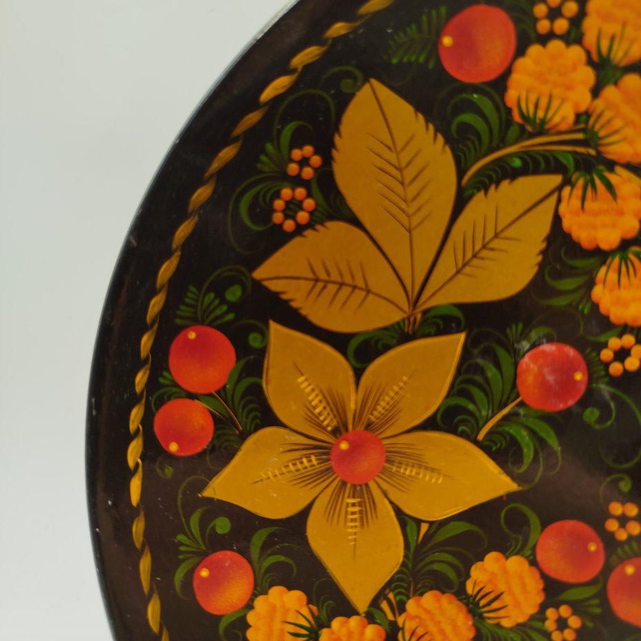 Тарелка настенная "Хохлома", папье-маше, роспись, СССР, 1970-1980 гг.