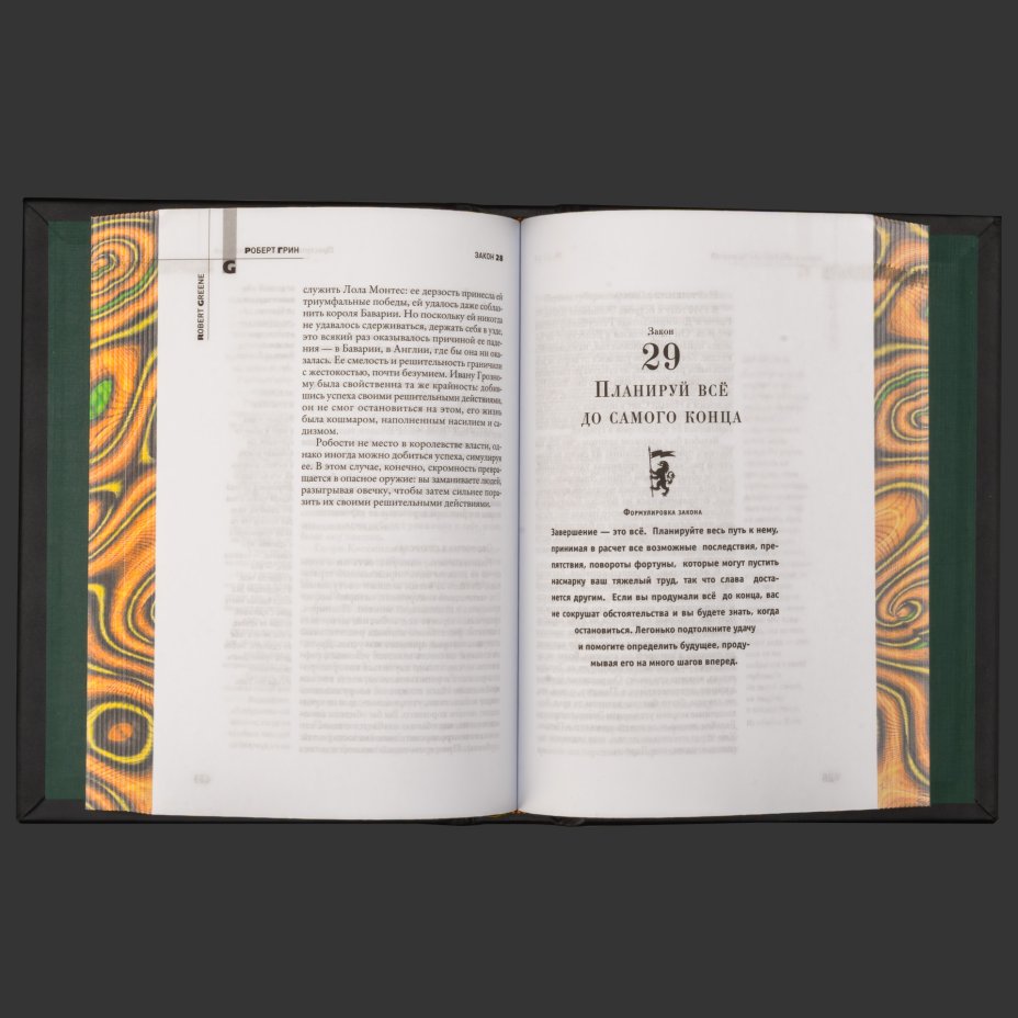 Книга в кожаном переплете "48 законов власти", Роберт Грин, бумага, кожаный переплет, тиснение, золочение, обрез с принтом, Российская Федерация, 2025 г.