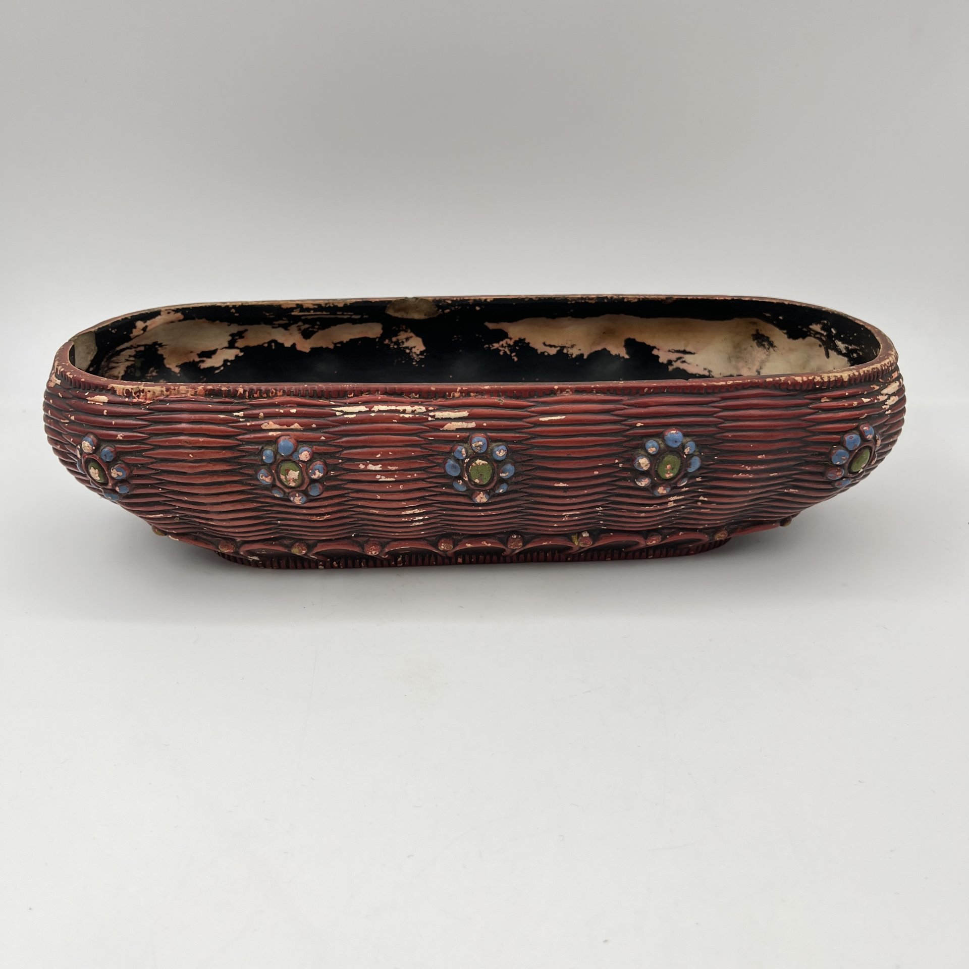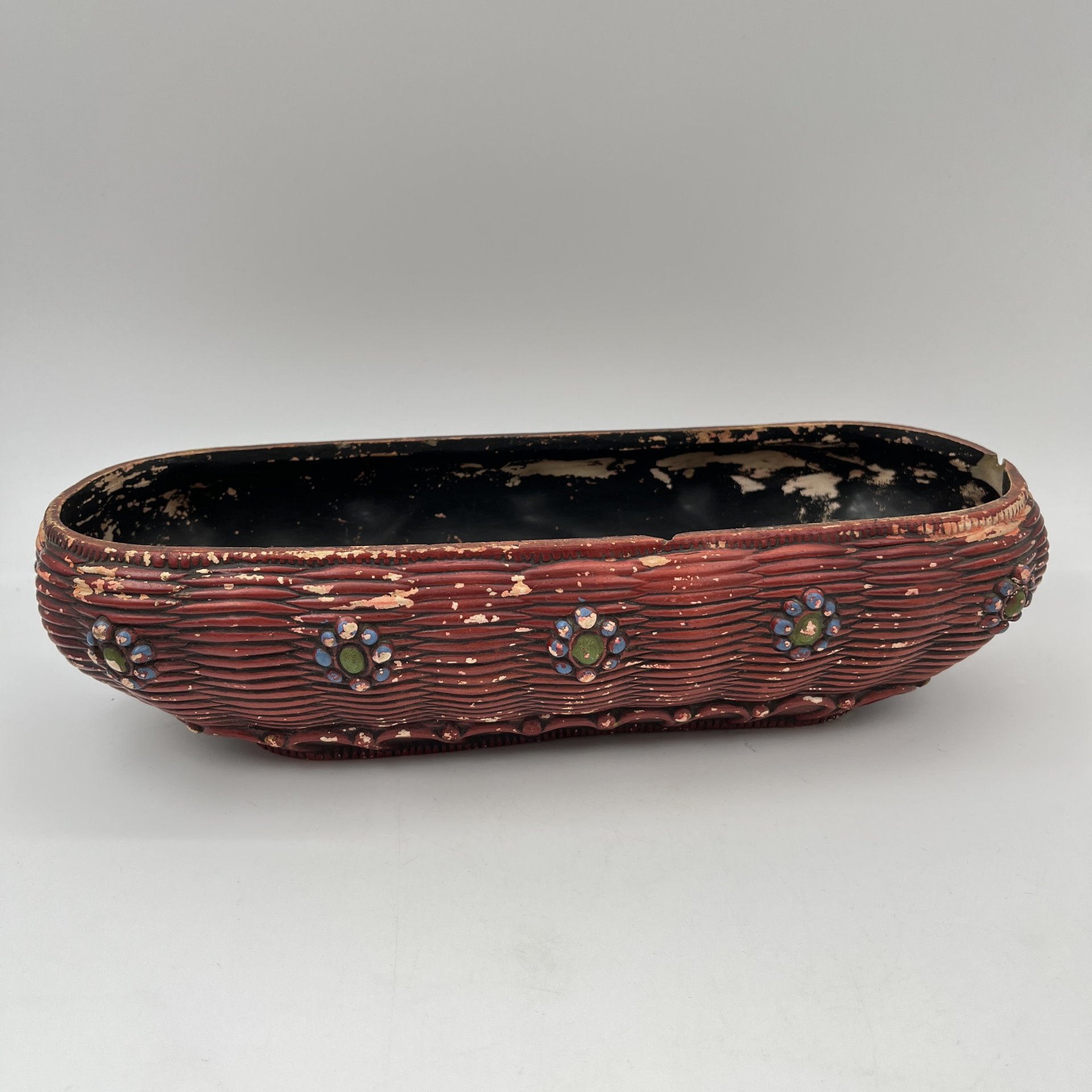 Кашпо миниатюрное для комнатных растений, украшенное изображением роз, металл, стекло, Западная Европа, 1930-1950 гг.