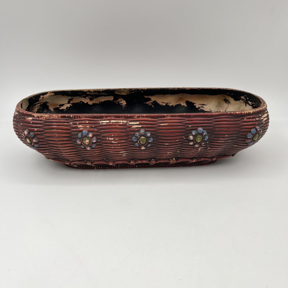 Миниатюрное настенное кашпо, украшенное абстрактным декором, керамика, поливы, Московский керамико-плиточный завод имени Н.А. Булганина, СССР, 1970-1990 гг.
