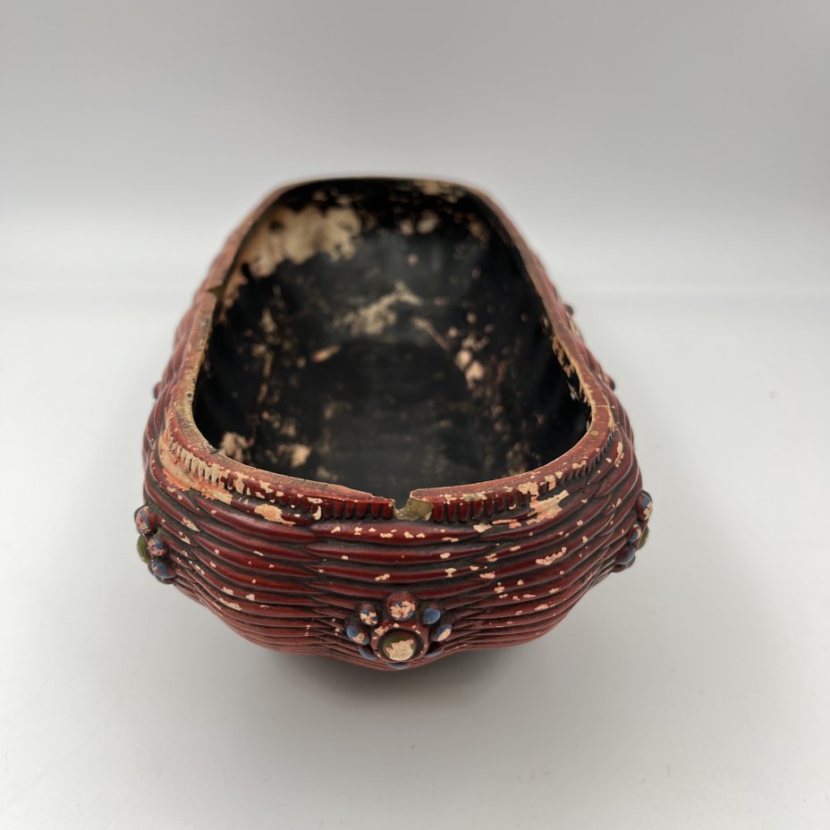 Квадратное кашпо для цветов, украшенное рельефным цветочным декором, фаянс, роспись, Западная Европа, 1900-1930 гг.