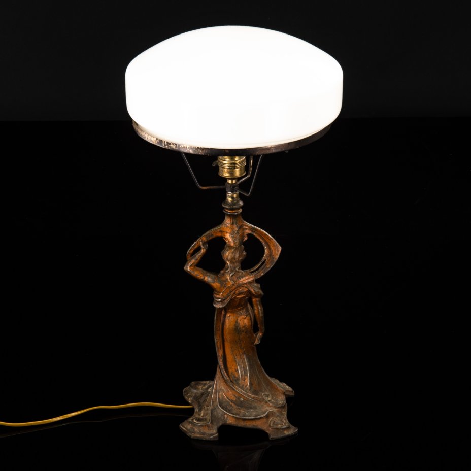 Лампа настольная, стекло, опаловое, металл, Западная Европа, 1900-1920 гг.