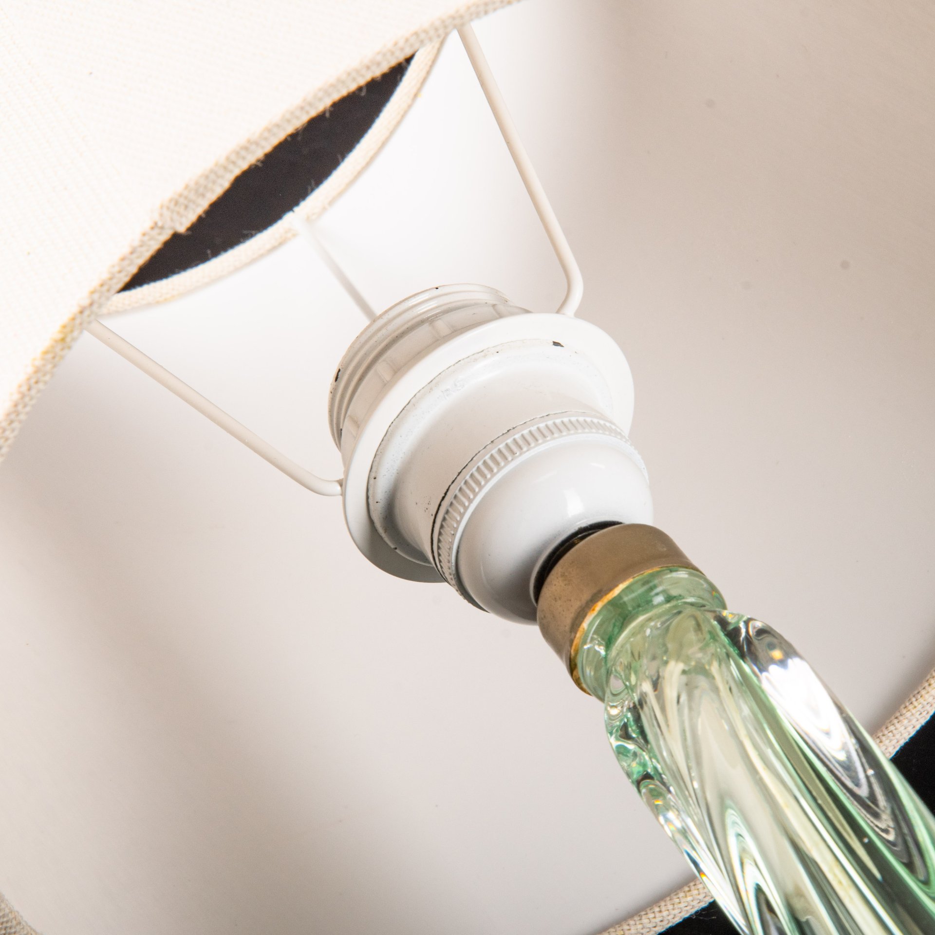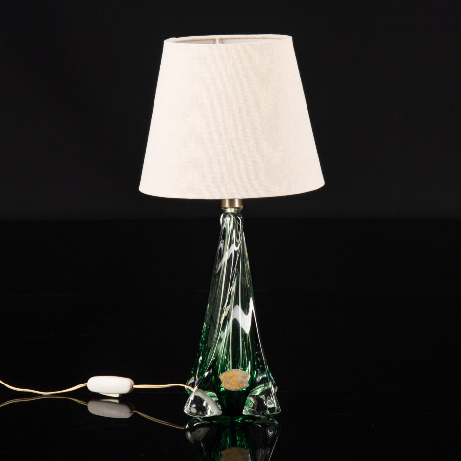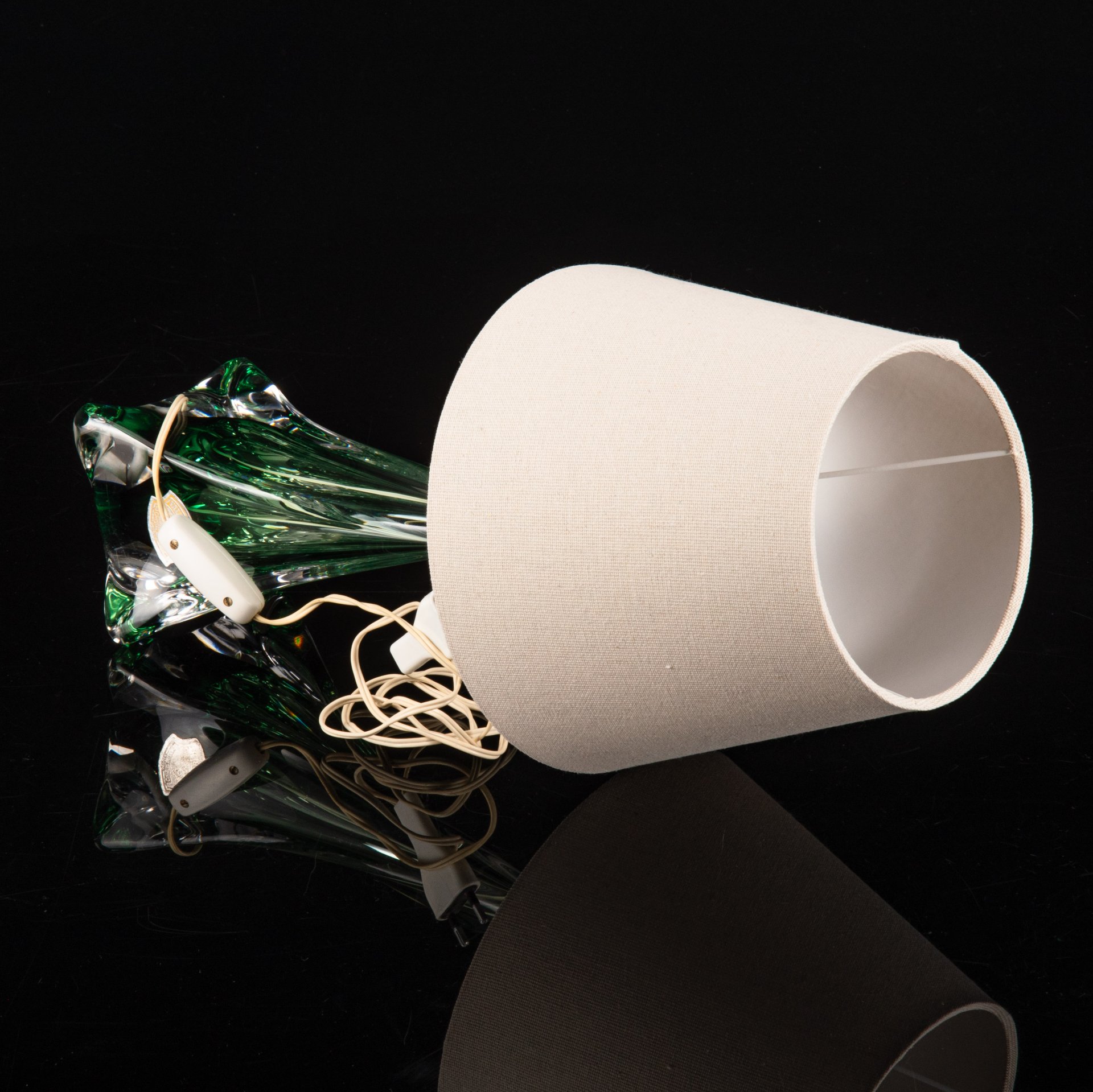 Лампа настольная, зеленого цвета, спиралевидной формы, стекло, гутная техника, металл, пластик, Val Saint Lambert, Бельгия, 1950-1970 гг.