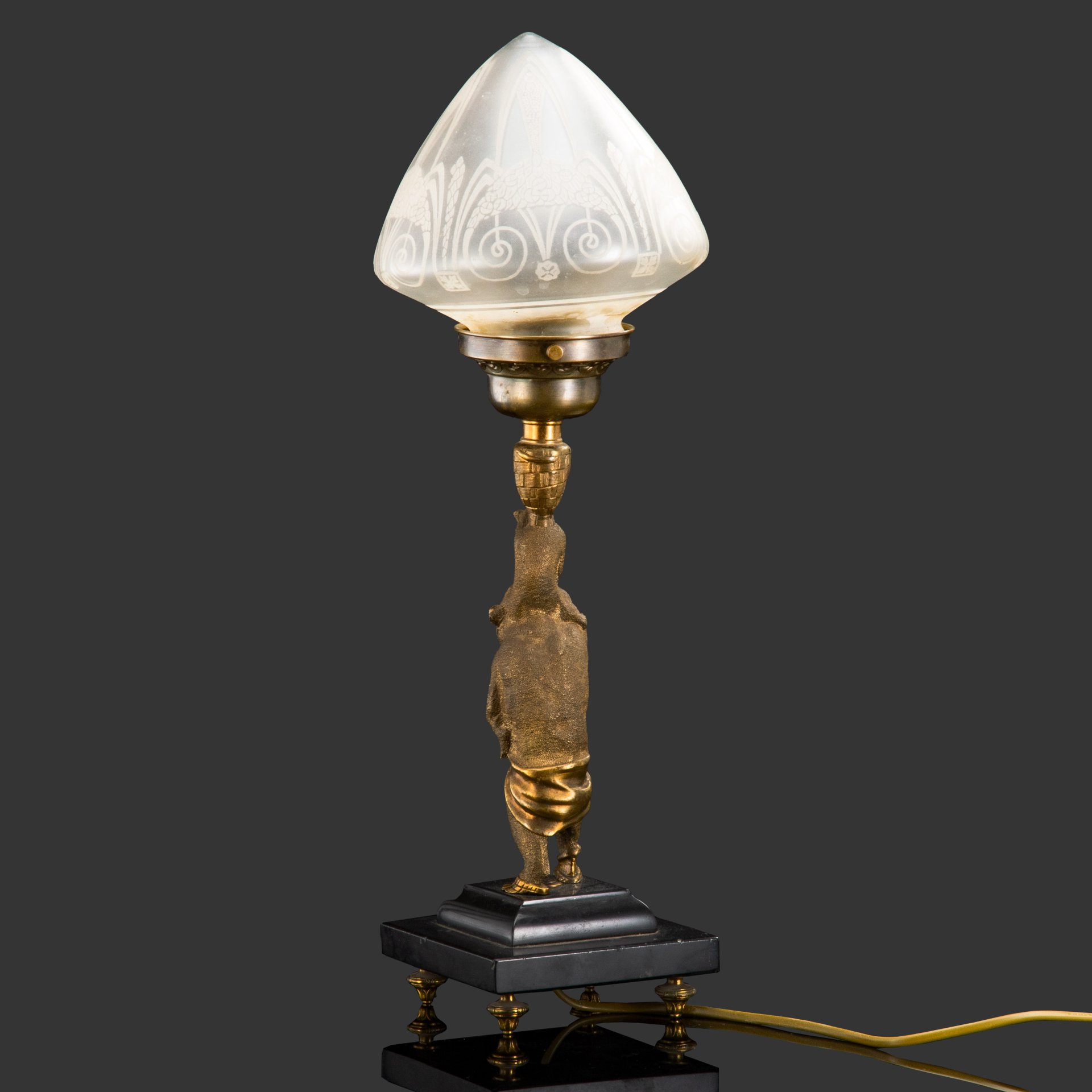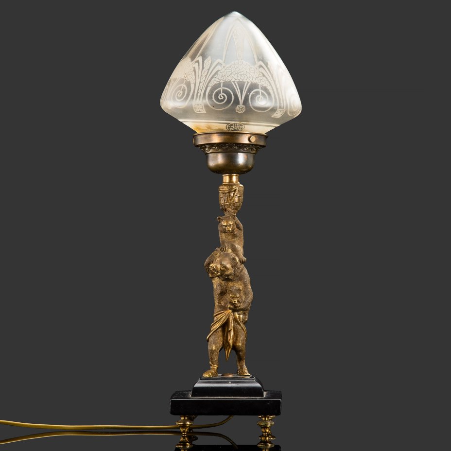 Купить Лампа настольная переносная с фигурным основанием, чугун, латунь, пластик, стекло, Россия, 1900-1930 гг.