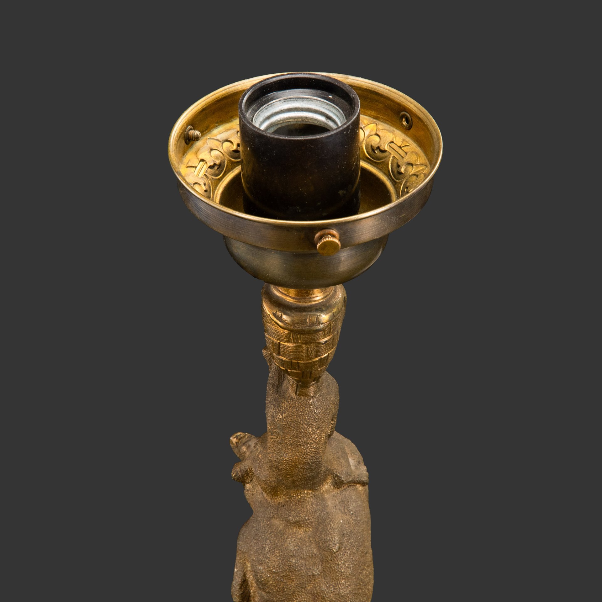 Лампа настольная переносная с фигурным основанием, чугун, латунь, пластик, стекло, Россия, 1900-1930 гг.