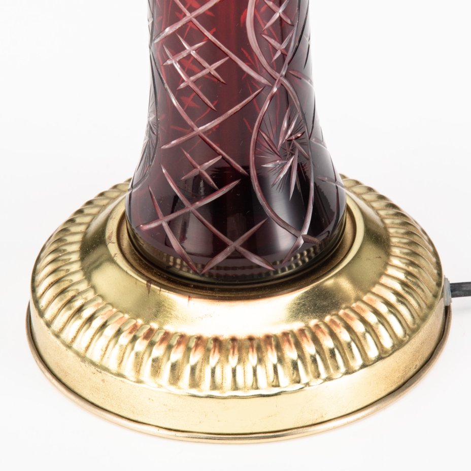 Лампа настольная рубинового цвета с резным орнаментом, хрусталь, алмазная грань, сплав металлов, полимерный материал, Чехословакия, 1950-1980 гг.